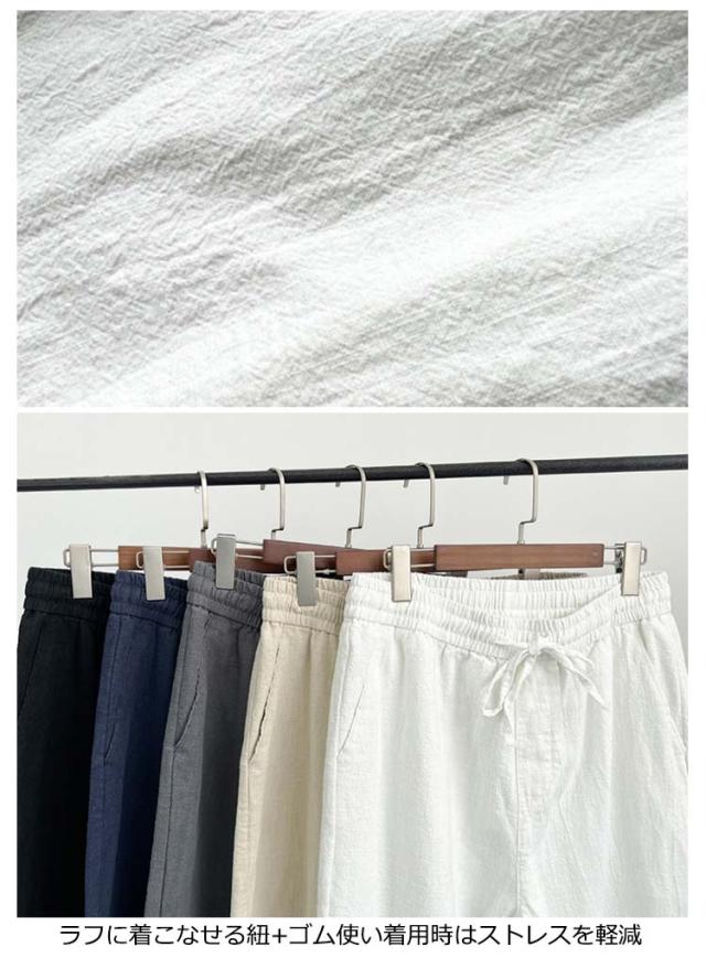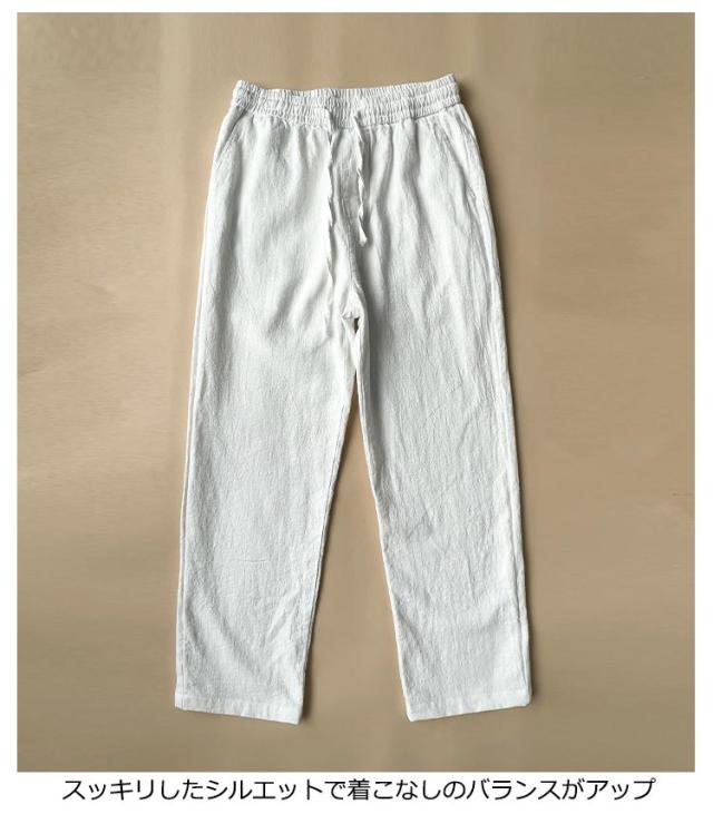 | 6COLORS×7SIZE 綺麗なシルエットが演出される麻パンツ ラフに着こなせる紐+ゴム使い着用時はストレスを軽減 シンプルな着こなしでもお洒落に魅せてくれる スッキリしたシルエットで着こなしのバランスがアップ | |