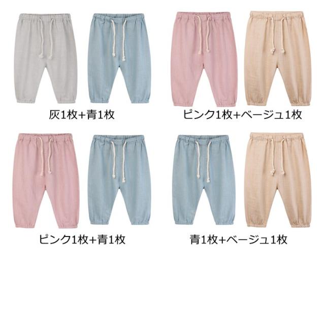 | 80cm 90cm 100cm 110cm 120cm 130cm 虫よけ・UV対策キッズ綿麻パンツ2枚セット | |