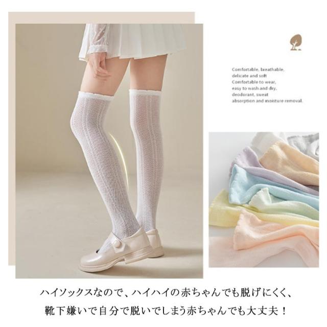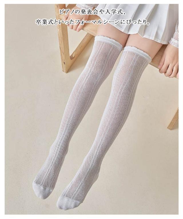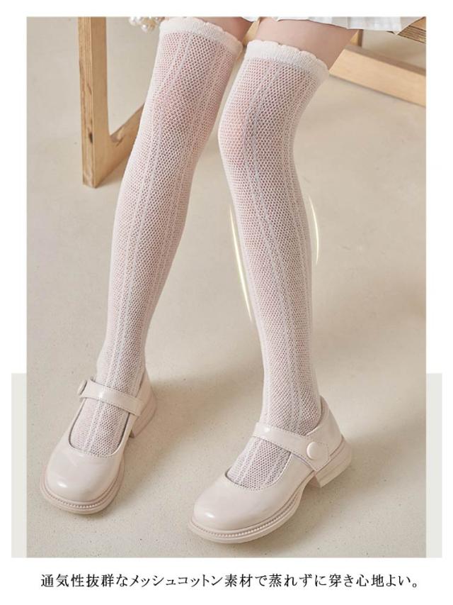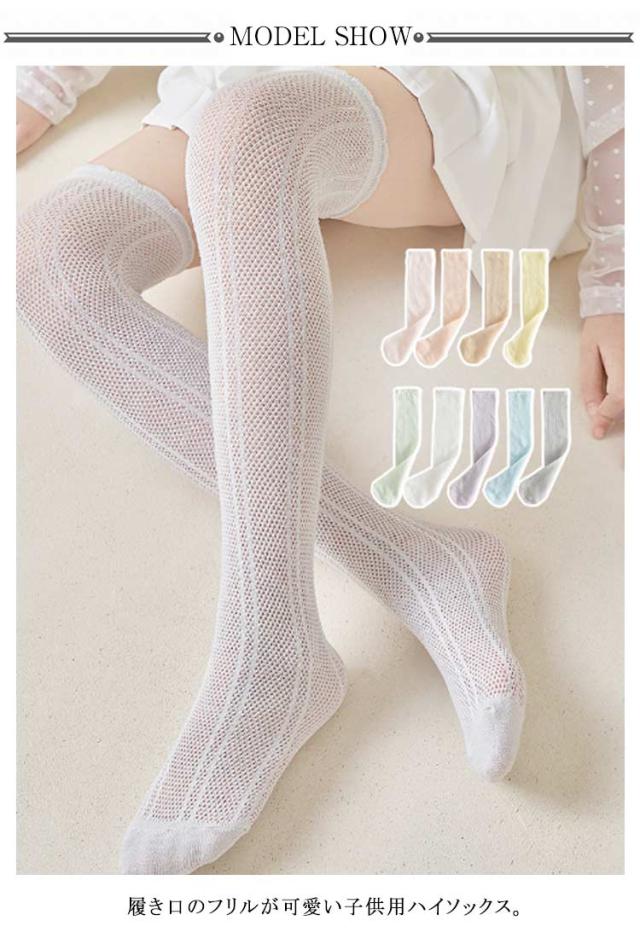 4足組 夏 靴下 女の子 膝上 メッシュ 4足組 女の子 ハイソックス 薄手 無地 靴下 フリル フォーマル ベビー 虫対策 おしゃれ 可愛い ソックス キッズ ダンス イベント ハロウィン テーマパーク