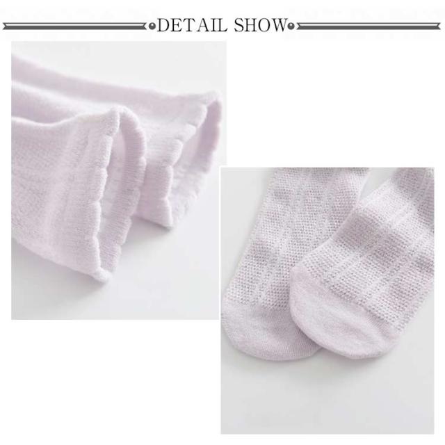 | キッズ用フォーマルデザインで上質なレースと編み模様がお子様の足元からエレガントに演出いたします。 履き口のフリルが可愛い子供用ハイソックス。 シンプルな無地のソックスなのでどんな服にも合わせやすく、男女問わず使用できます。 履き口の伸びが強すぎないので太ももを締め付けず、痕がつきにくい! 通気性抜群なメッシュコットン素材で蒸れずに穿き心地よい。 ハイソックスなので、ハイハイの赤ちゃんでも脱げにくく、靴下嫌いで自分で脱いでしまう赤ちゃんでも大丈夫! ピアノの発表会や入学式、卒業式といったフォーマルシーンにぴったり。 | |