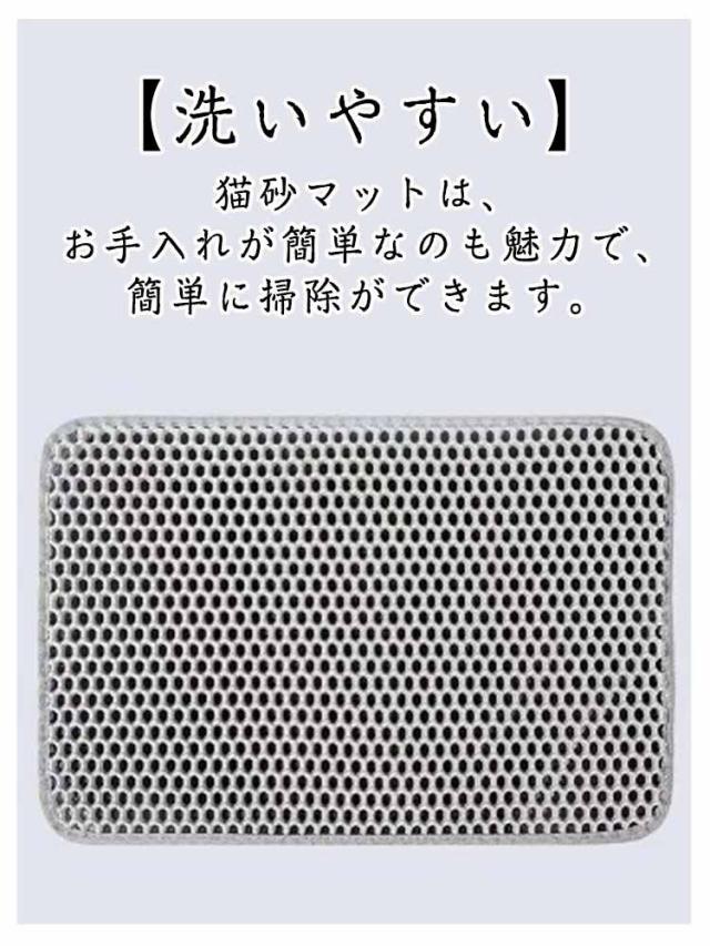 | 【二重構造】二重構造のデザインのため、猫爪で持ち出したきれいな猫砂が循環にご利用することができ、細かい猫砂の掃除もとても便利です。掃除時間を節約するだけでなく、猫砂の費用も節約します。 【洗いやすい】猫砂マットは、お手入れが簡単なのも魅力で、簡単に掃除ができます。 【非毒性EVA材料】軽量で耐久性があり、無毒性のEVA素材で作られております。素材は柔らかく耐久性があり、猫は歩いて快適であり、猫の爪で簡単に傷ついていません。 【防水底層防カビ】 上層は非毒性EVA材質、底層は防水デザイン。湿気を吸収し、カビの発生や臭気の拡散を抑制するために独立気泡構造を採用します。滑り止め機能も持っています。 【携帯便利】 軽量で折りたためるので、家に、車の中に、旅行、どのような場合に使用できます。 | |