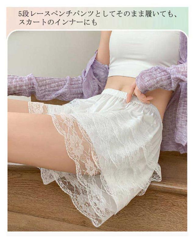 | かわいい アリルパンツ 5段レースペンチパンツとしてそのまま履いても、スカートのインナーにも 部屋着にしてもかわいい♪おうちでリラックス ハードなダンスやコスやレ衣装にもバッチリ! サラッとした肌触り | |