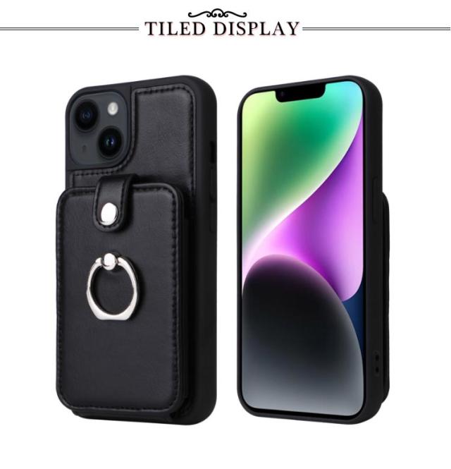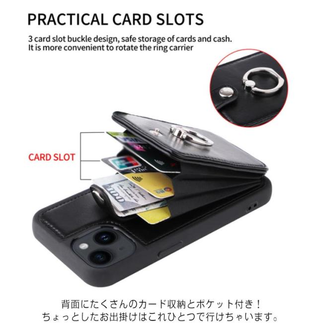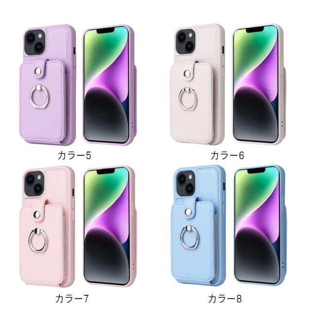 iPhone15 送料無料 背面カード収納 リング付き 14 ケース 15promax 15plus スマホケース スタンド PUレザー 15pro 背面カードポケット カバー 小銭入れ 14pro 横置き 送料無料 手帳 リンク付き カード入れ 軽量 耐衝撃 シンプル 高級感