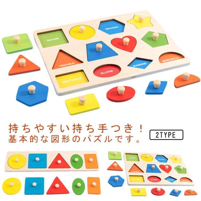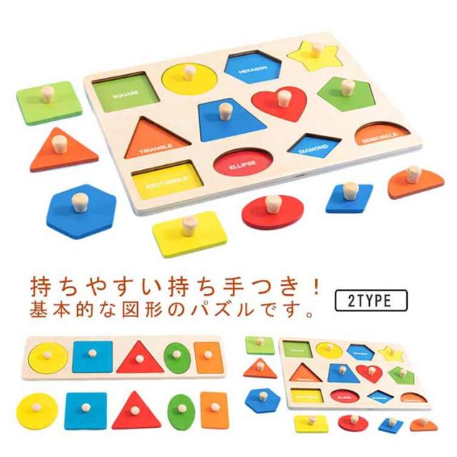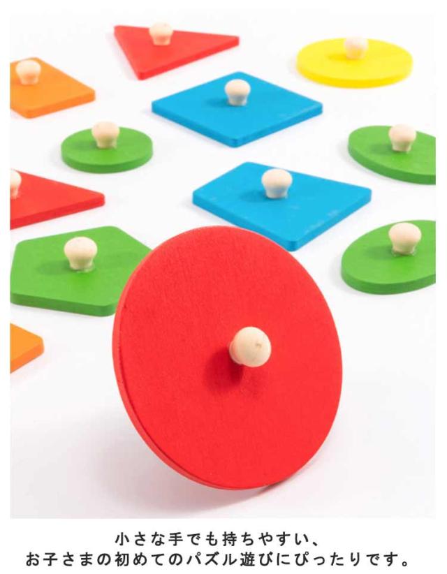 | 持ちやすい持ち手つき!基本的な図形のパズルです。 小さな手でも持ちやすい、お子さまの初めてのパズル遊びにぴったりです。 遊びながら手先の発育に図形への理解に一緒にお話しして言語の習得に。 可愛いデザインの知育おもちゃはプレゼントにもおすすめ! | |