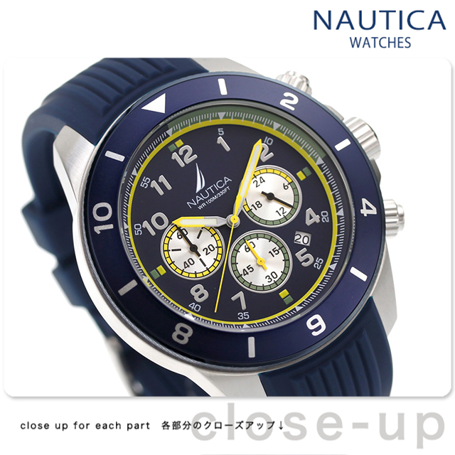 正規品 7年保証キャンペーン ノーティカ ノーティカワン クロノグラフ メンズ 腕時計 NAPNOS402 NAUTICA NAUTICA ONE アナログ ネイビー ◆ノーティカは1983年にニューヨークで誕生したアメリカンライフスタイルブランドです。モダンで洗練されたマリンスタイリングを得意とし、その魅力をあますことなく表現したノーティカウォッチは、世界最大級の時計会社グループによる革新的な最先端技術がもたらす高品質・高性能を併せ持っています。 「NAUTICA ONE/ノーティカワン」は、IPメッキの印象的なトップリングのデザイン。インナーリングとリサイクルステンレススチールケースのコントラストカラーが特徴のこのタイムピースは、洗練されたクロノグラフムーブメント、日付窓、シリコンストラップを備えています。