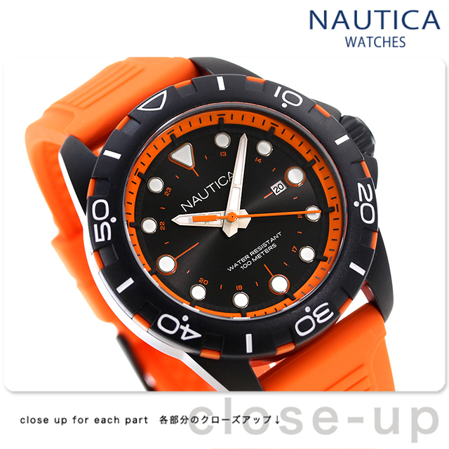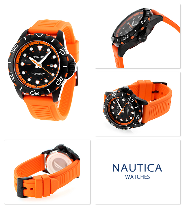 ノーティカ エヌエスアール クオーツ 腕時計 ブランド メンズ NAUTICA NAPNRS405 アナログ ブラック オレンジ 黒