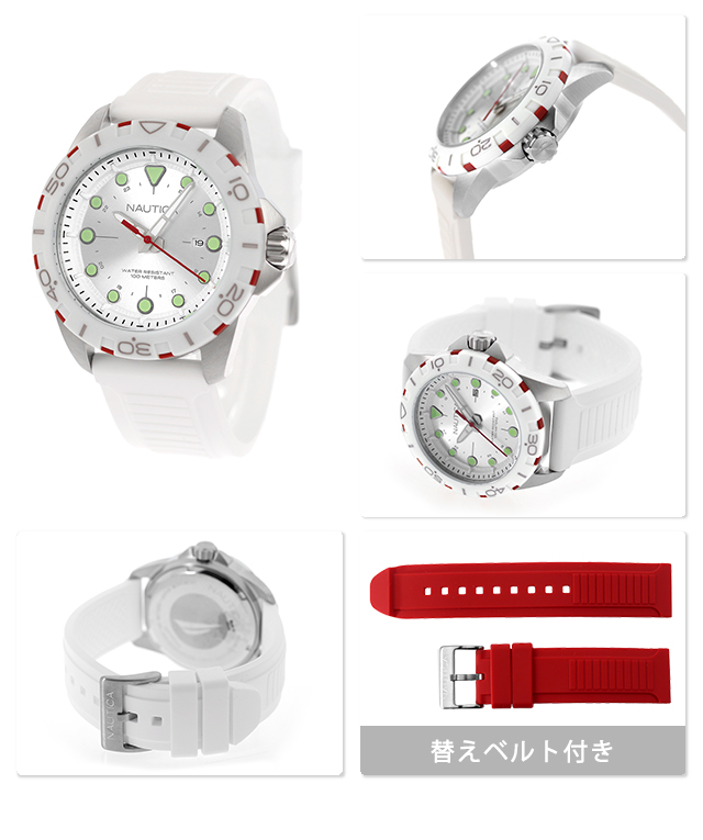ノーティカ エヌエスアール クオーツ 腕時計 ブランド メンズ 替えベルト NAUTICA NAPNRS406 アナログ シルバー ホワイト 白