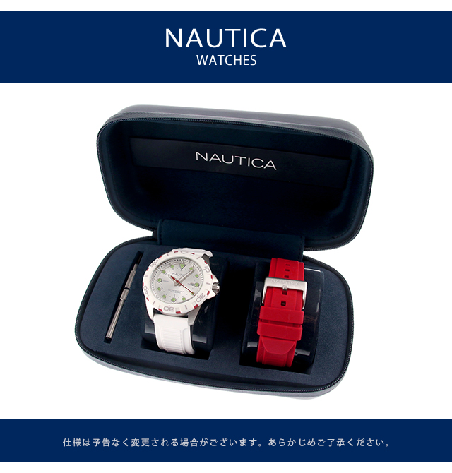 | 付属品 | 保証書・NAUTICAオリジナルボックス 替えベルト付き(ラバー/レッド) ※取扱説明書につきましては、メーカー公式ページよりご確認ください。 |