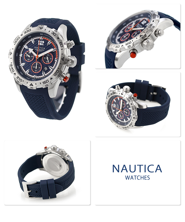 正規品 7年保証キャンペーン ノーティカ エヌエスティ— クロノグラフ メンズ 腕時計 NAPNSS406 NAUTICA NST アナログ ネイビー ◆ノーティカは1983年にニューヨークで誕生したアメリカンライフスタイルブランドです。モダンで洗練されたマリンスタイリングを得意とし、その魅力をあますことなく表現したノーティカウォッチは、世界最大級の時計会社グループによる革新的な最先端技術がもたらす高品質・高性能を併せ持っています。 この「NST/エヌエスティ—」ウォッチはテクスチャード加工の文字盤と新色でアップデートされました。コントラストのあるサブダイヤルとスイープにマッチするプッシャーで作られたこのタイムピースは、大胆な46mmリサイクルステンレススチールケースとシリコンストラップを備えています。
