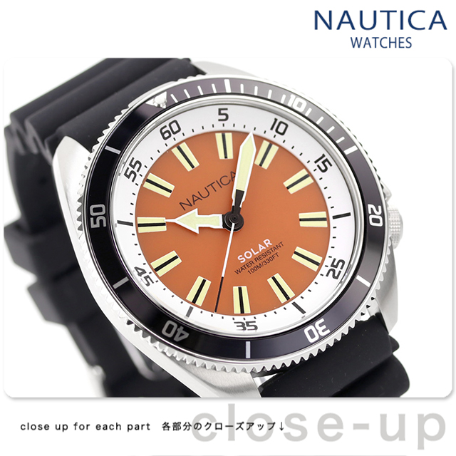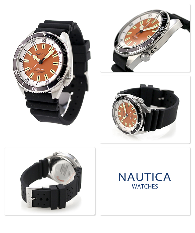 正規品 7年保証キャンペーン ノーティカ ノーティカヴィンテージ メンズ 腕時計 NAPNVS402 NAUTICA NAUTICA VINTAGE アナログ ライトブラウン ブラック 黒 ◆ノーティカは1983年にニューヨークで誕生したアメリカンライフスタイルブランドです。モダンで洗練されたマリンスタイリングを得意とし、その魅力をあますことなく表現したノーティカウォッチは、世界最大級の時計会社グループによる革新的な最先端技術がもたらす高品質・高性能を併せ持っています。 ダイバームードを備えたブランドのヴィンテージ魂を探求する「NAUTICA VINTAGE/ノーティカヴィンテージ」は、大胆なベゼルと目を引くカラーでアップデートされました。44mmのリサイクルステンレススチールケースと3針ソーラームーブメントとシリコンストラップを備えています。