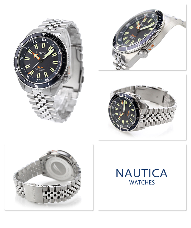 正規品 7年保証キャンペーン ノーティカ ノーティカヴィンテージ メンズ 腕時計 NAPNVS404 NAUTICA NAUTICA VINTAGE アナログ ダークネイビー ◆ノーティカは1983年にニューヨークで誕生したアメリカンライフスタイルブランドです。モダンで洗練されたマリンスタイリングを得意とし、その魅力をあますことなく表現したノーティカウォッチは、世界最大級の時計会社グループによる革新的な最先端技術がもたらす高品質・高性能を併せ持っています。 ダイバームードを備えたブランドのヴィンテージ魂を探求する「NAUTICA VINTAGE/ノーティカヴィンテージ」は、大胆なベゼルと目を引くカラーでアップデートされました。44mmのリサイクルステンレススチールケースに、3針ソーラームーブメントとブレスレットストラップが付いています。