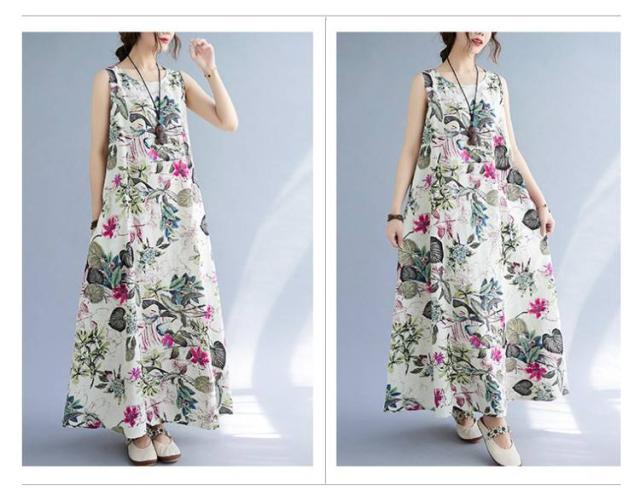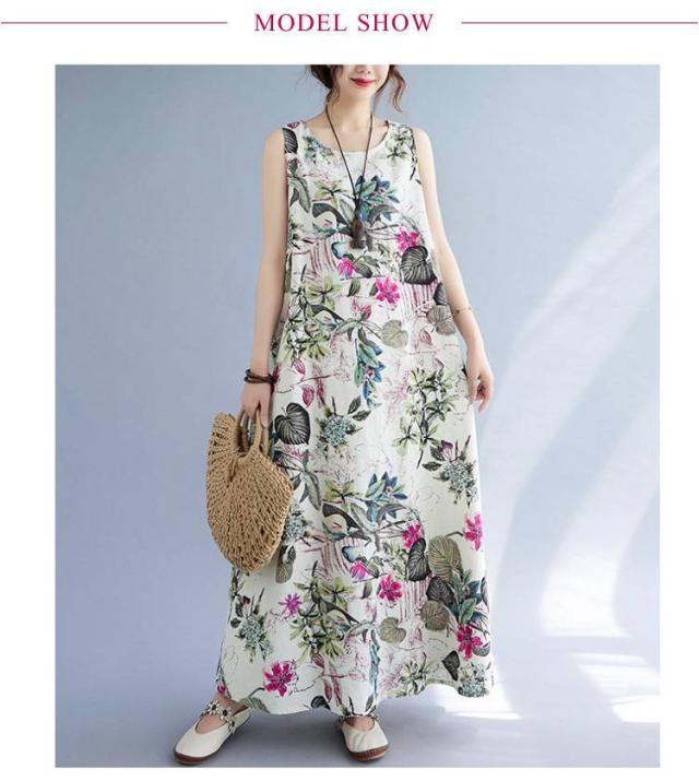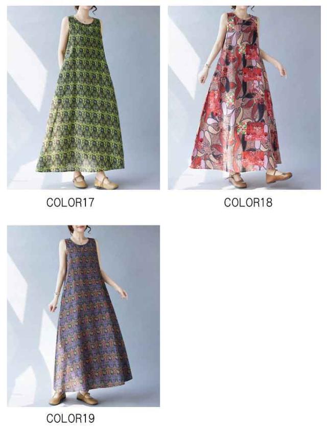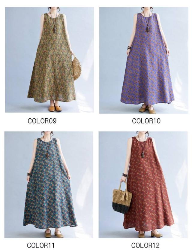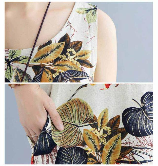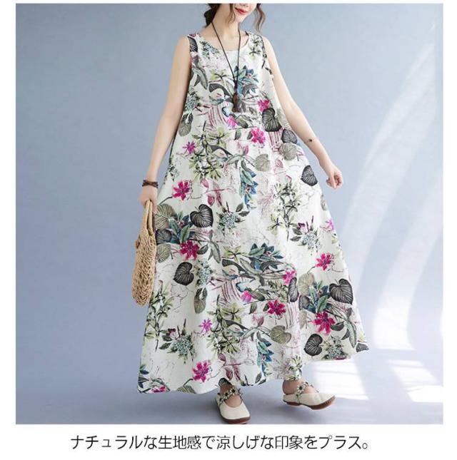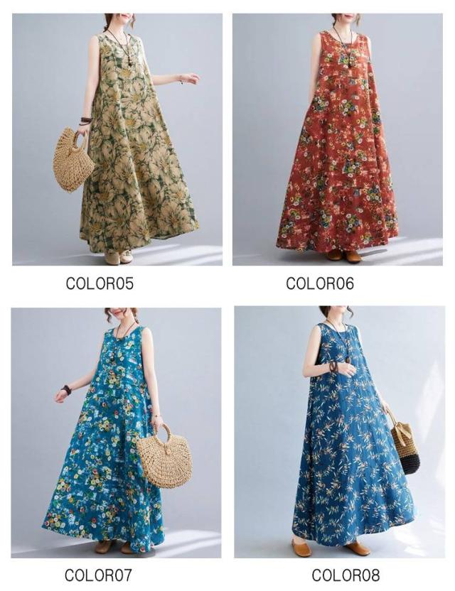 花柄 Uネック ロングワンピース ワンピース リネン ノースリーブ 麻 Aライン キャミソールワンピース 夏 サロペット オールインワン ジャンパースカート ロング ボタニカル ポケット プリント エスニック コットン ワンピース マキシ丈 大きいサイズ マキシワンピ 綿