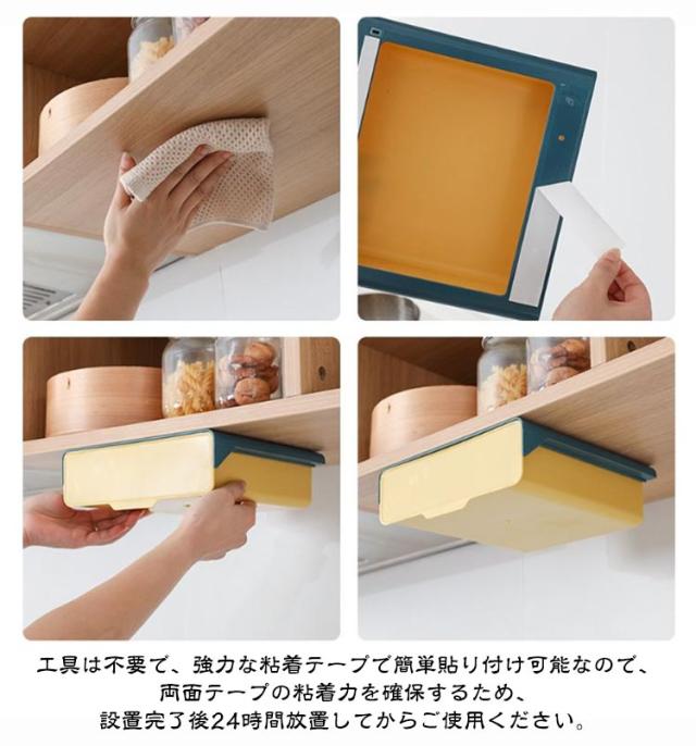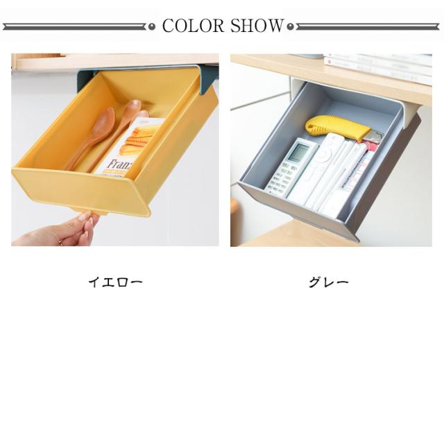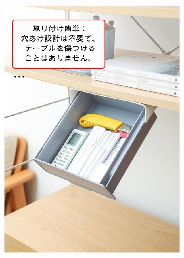 | 工具なしで簡単シール取り付け! トレー内蔵スライド式後付け引き出し 机の下に設置して、物を探すのに便利です。収納ボックスは文房具収納、小物収納などに最適です。 デスクトップをきれいに清潔な状態に保ちながら、文房具や小物を手の届くところに保管できます。 取り付け簡単:穴あけ設計は不要で、テーブルを傷つけることはありません。 工具は不要で、強力な粘着テープで簡単貼り付け可能なので、両面テープの粘着力を確保するため、設置完了後24時間放置してからご使用ください。 | |