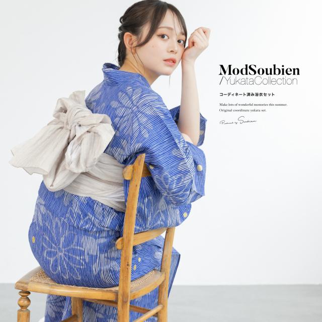 こちらの商品は、浴衣・帯・下駄の3点セットです。セット内容の一部変更や、それに伴う値引きは承っておりません。