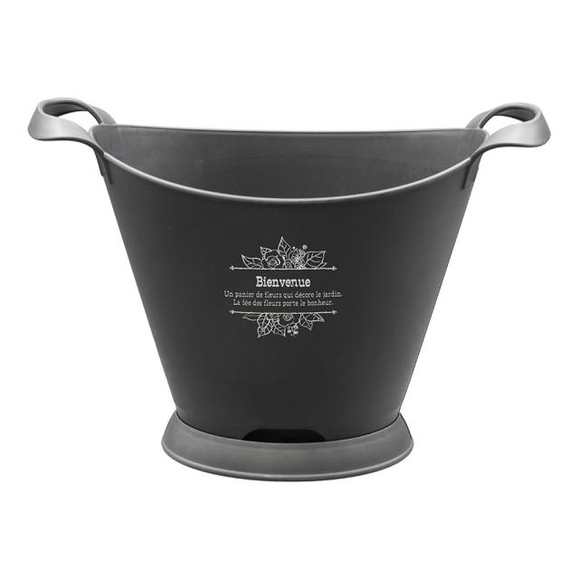 ・高さ約17cm(受け皿含む)、幅29cm(取っ手含む)、奥行16cm 選べる5色のオシャレなブーケプランターです。寄せ植え用の鉢として、実店舗でも好評です。 |