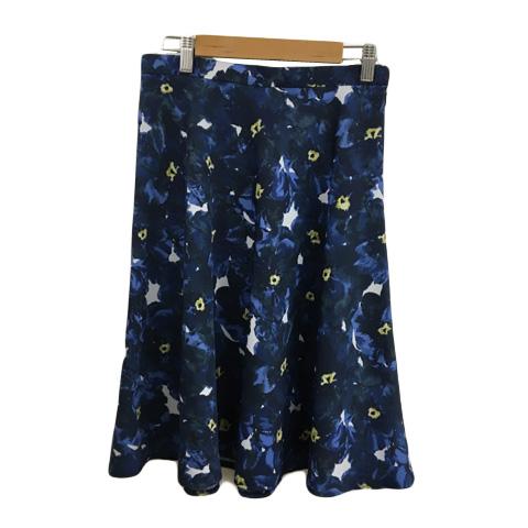 【中古】ケティ KETTY スカート フレア 膝丈 花柄 総柄 2 青 白 ブルー ホワイト レディース