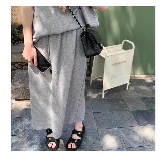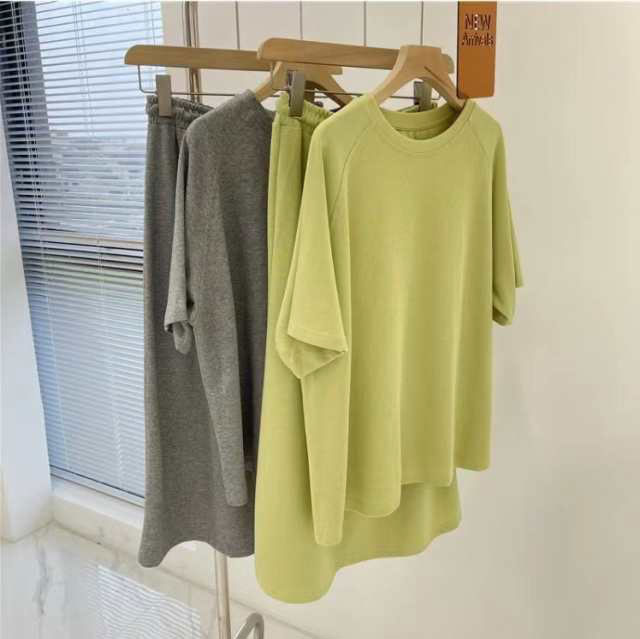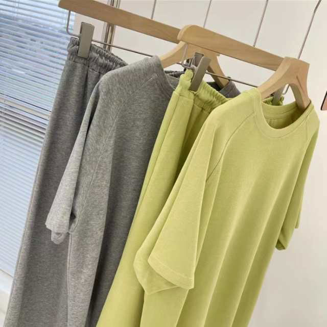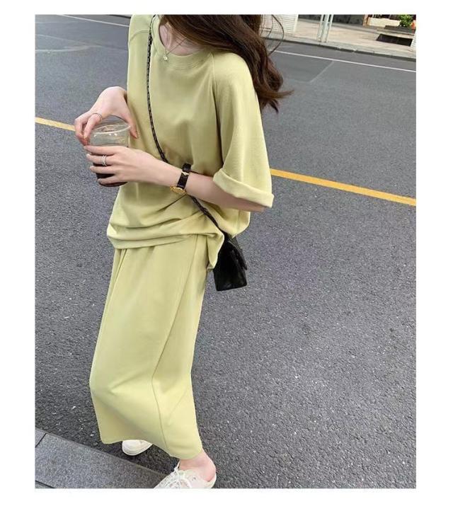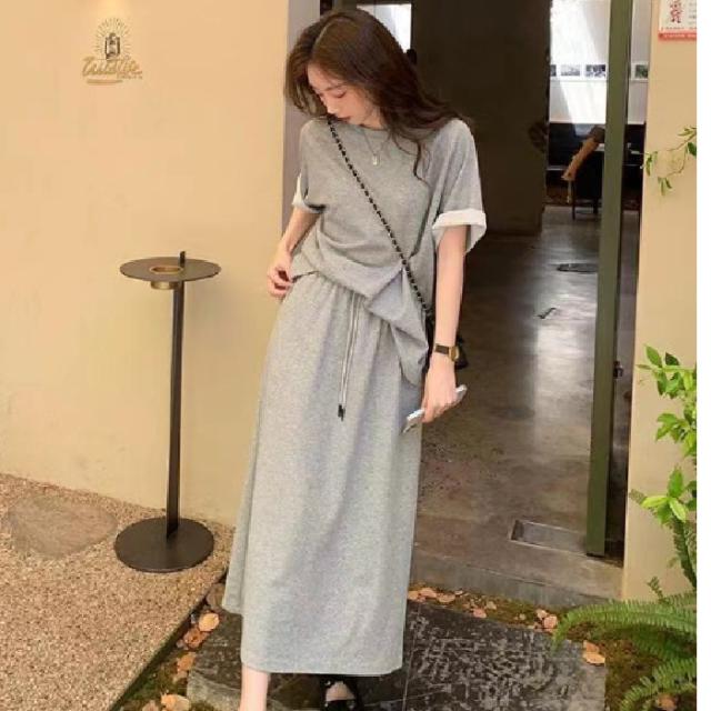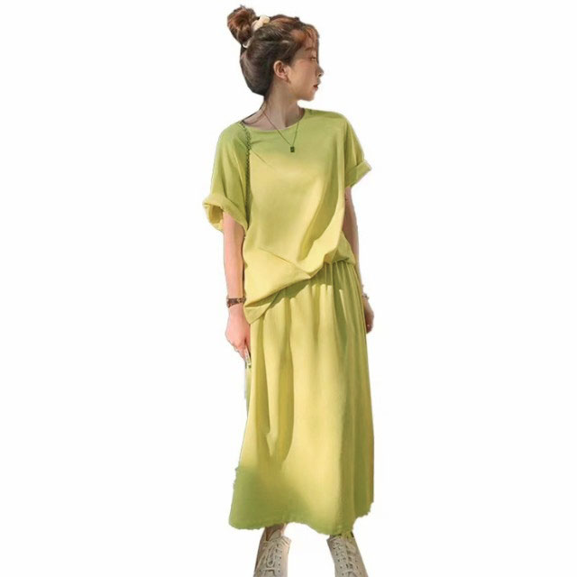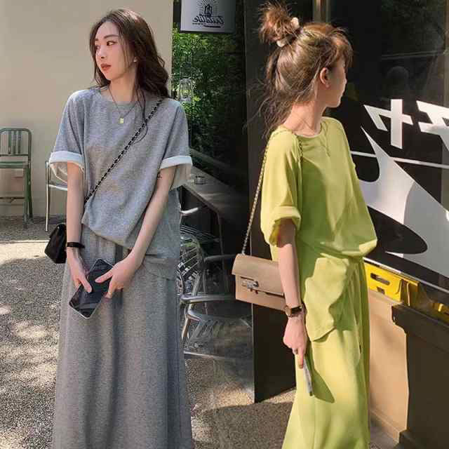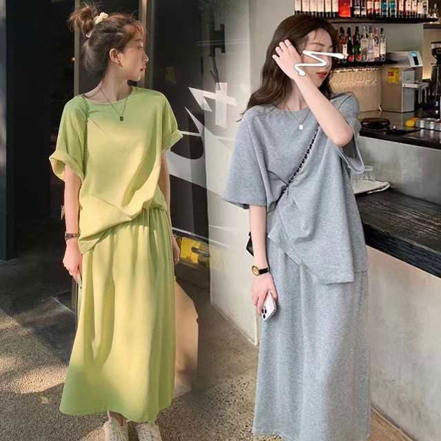 セットアップ 半袖Tシャツ スカート 上下セット スウェット スエット ロングスカート ウェストゴム カットソー 半袖 カジュアルセット 大きいサイズ 送料無料