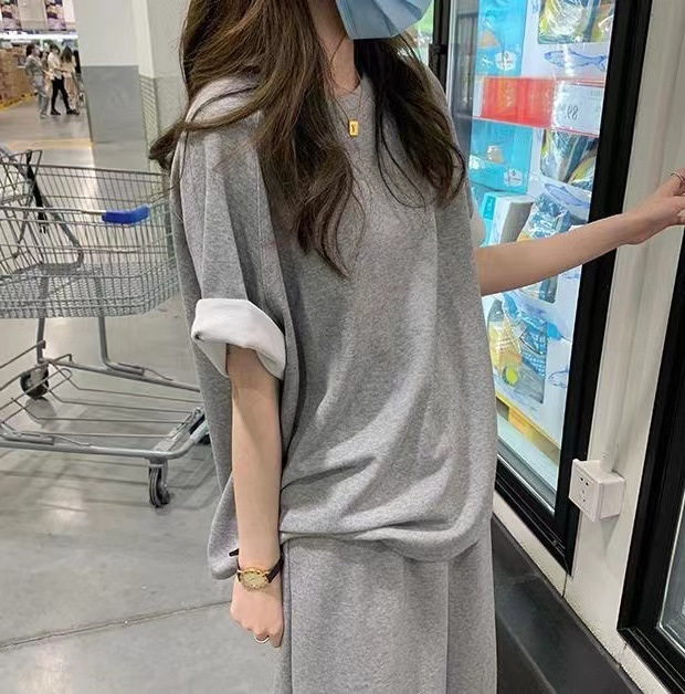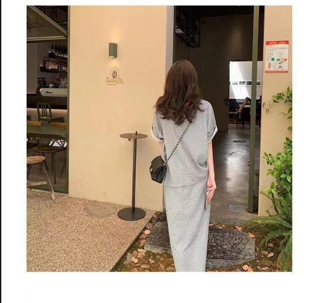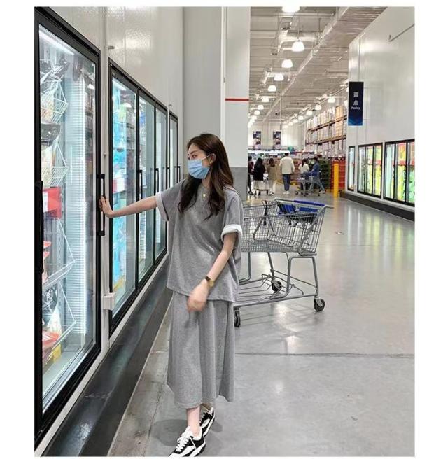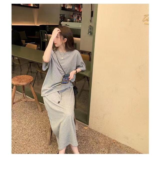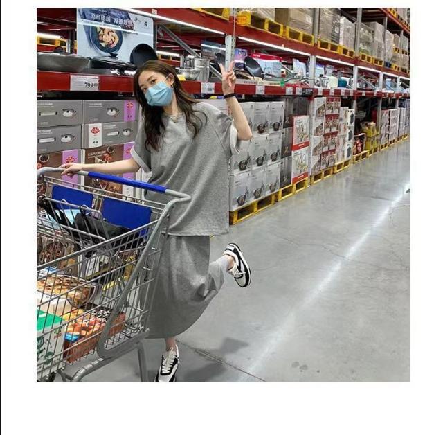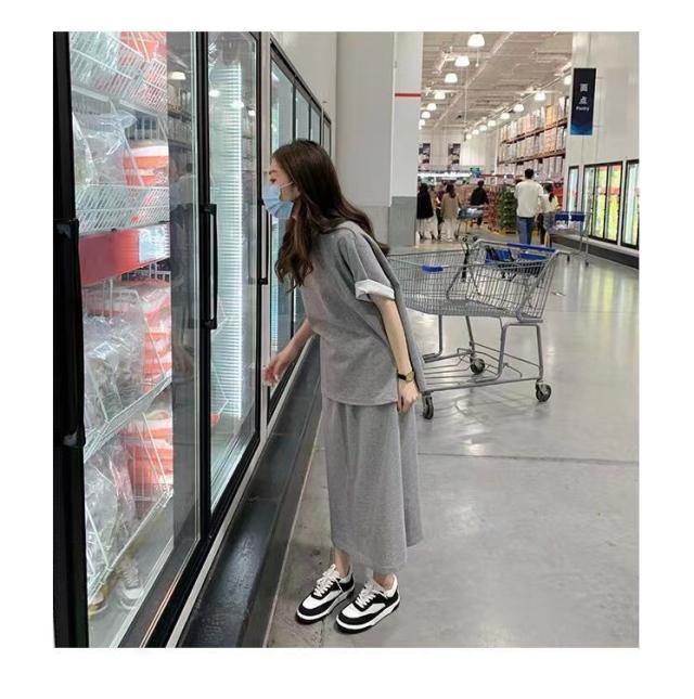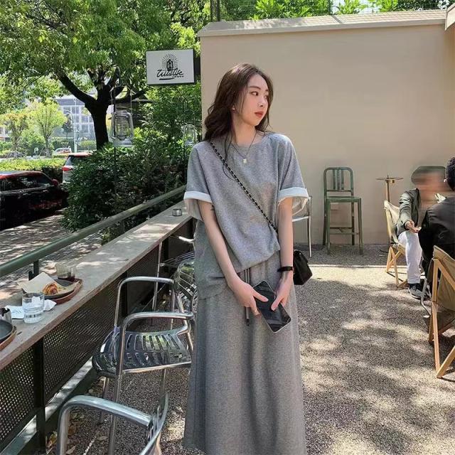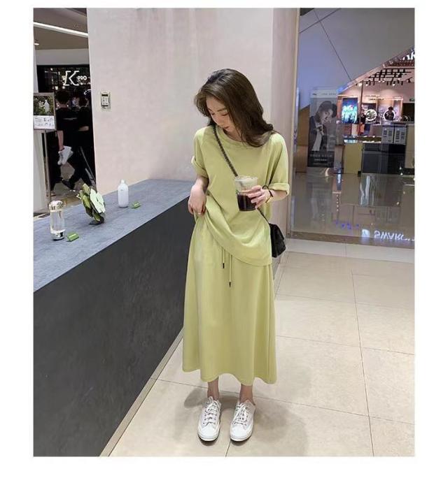 セットアップ 半袖Tシャツ スカート 上下セット スウェット スエット ロングスカート ウェストゴム カットソー 半袖 カジュアルセット 大きいサイズ 送料無料