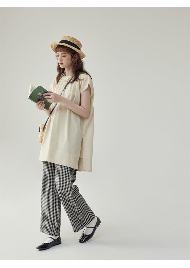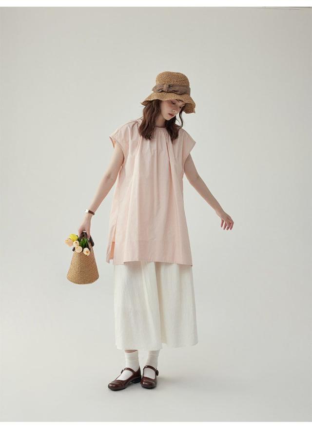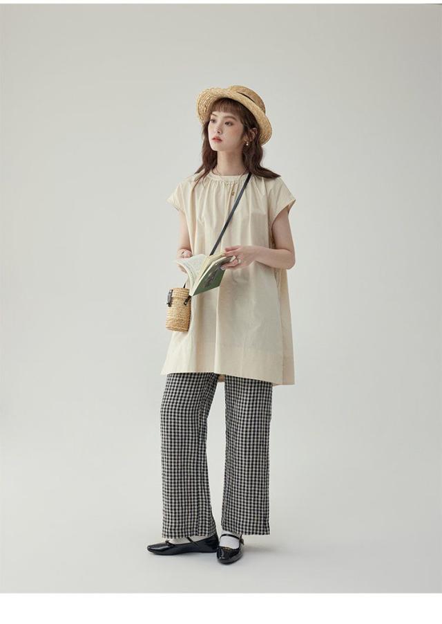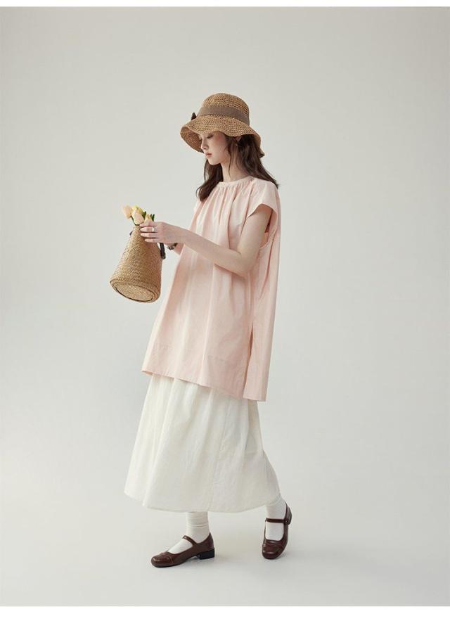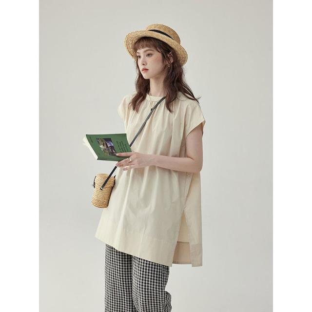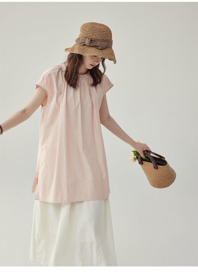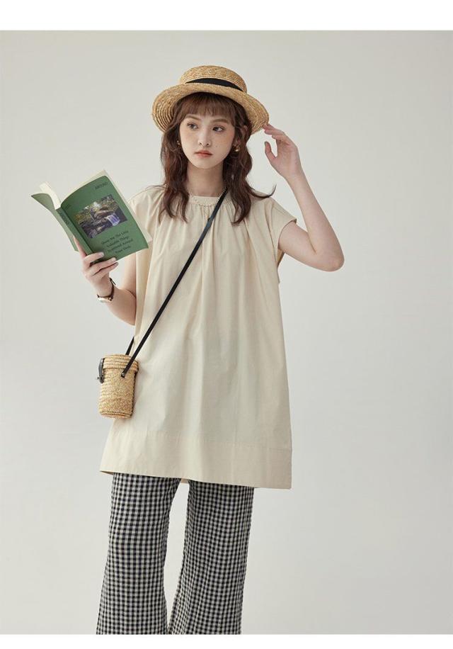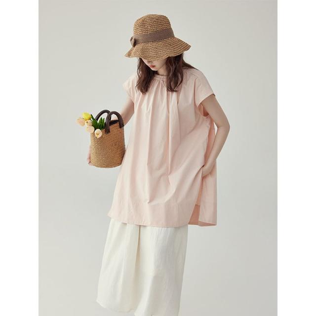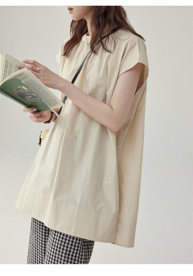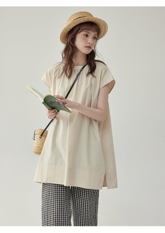 送料無料 シャツ ブラウス レディース トップス チュニック フレンチスリーブ 春夏 ブラウス プルオーバー オーバーサイズ Tシャツ ロング ゆったり 体型カバー カジュアル 無地