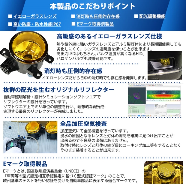 高い質感と耐久性を実現するEマーク認証イエローガラスレンズフォグユニット
