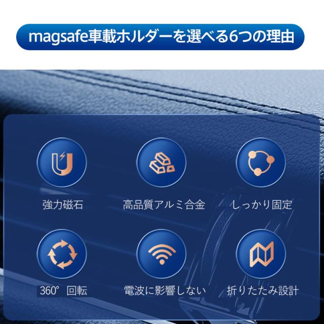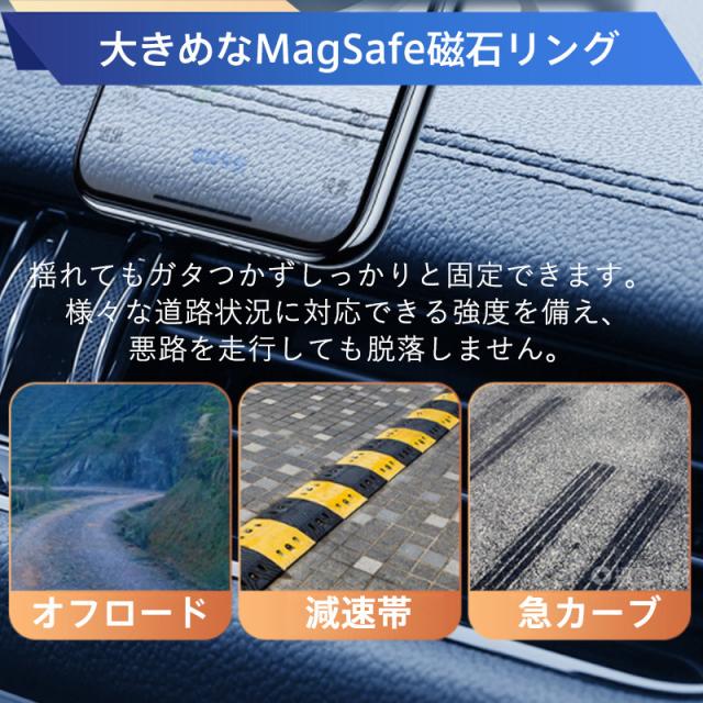 ・車載magasafeスタンドの本体はアルミ合金材料を使用、スタンドの耐用性能と軽量化を保証できます。