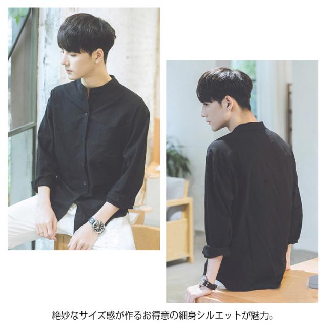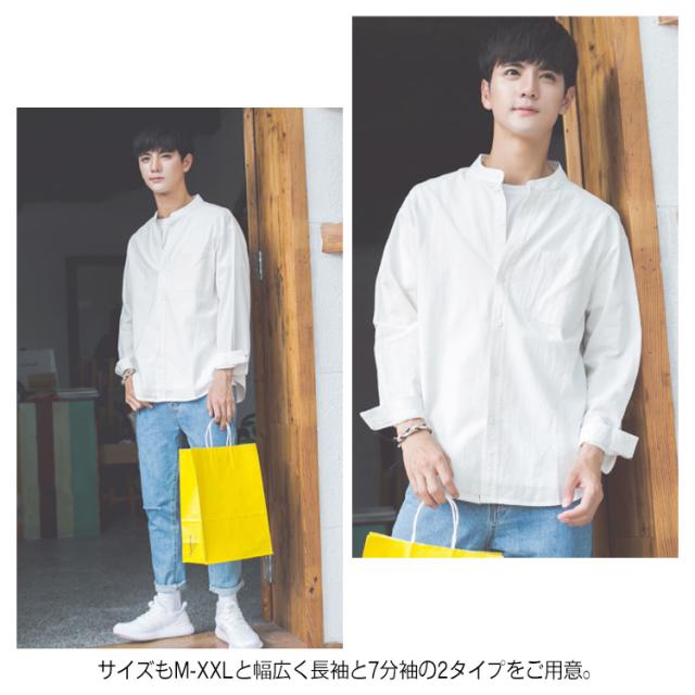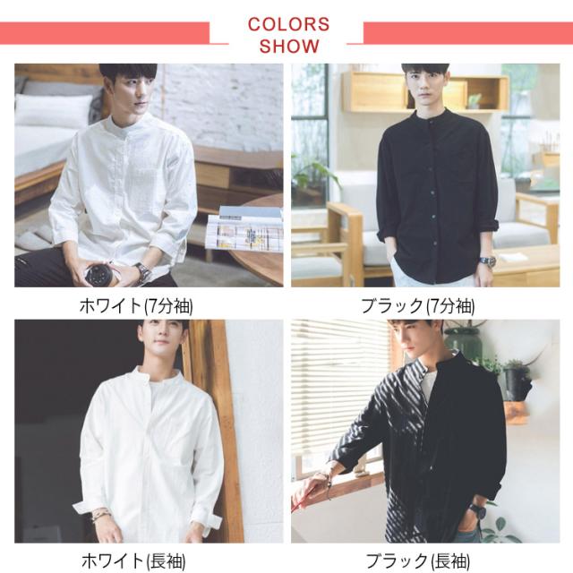 《送料無料》立ち襟シャツ メンズ スタンドカラーシャツ シャツ 長袖 七分袖 カジュアルシャツ 春シャツ 白 黒 無地 通勤 通学