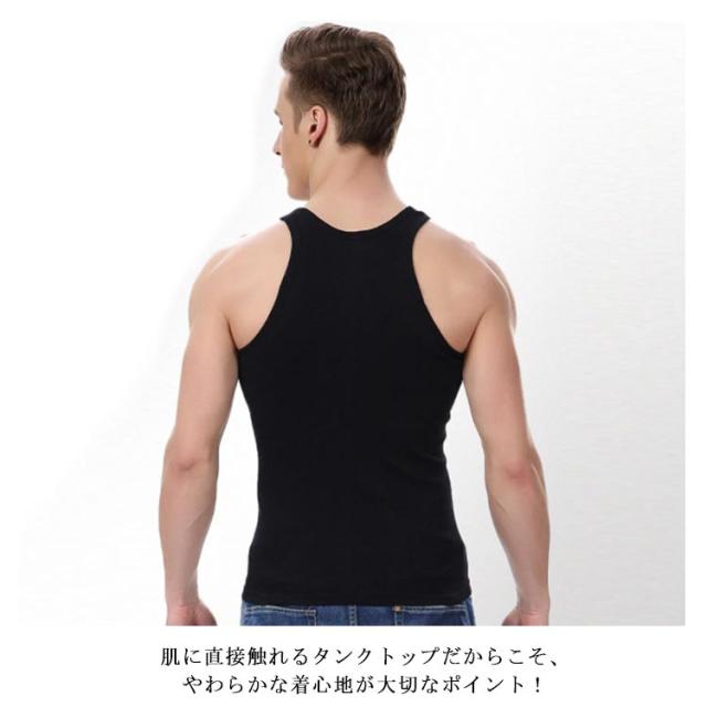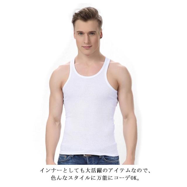 | 3枚セットで大買い得!伸縮性に富み、体にやさしくフットしてくれるタンクトップ。 肌に直接触れるタンクトップだからこそ、やわらかな着心地が大切なポイント! シンプル無地のカラータンクだから、シャツやロンTのインナーに合わせてみたり、狙ってちょっとチラ魅せもカンペキ! 1枚で着れば、男らしくワイルド美! インナーとしても大活躍のアイテムなので、色んなスタイルに万能にコーデOK。 何枚あっても使えるタンクトップは、気分やスタイルに合わせて、また洗い替えに色違いで欲しいアイテムです。 | |