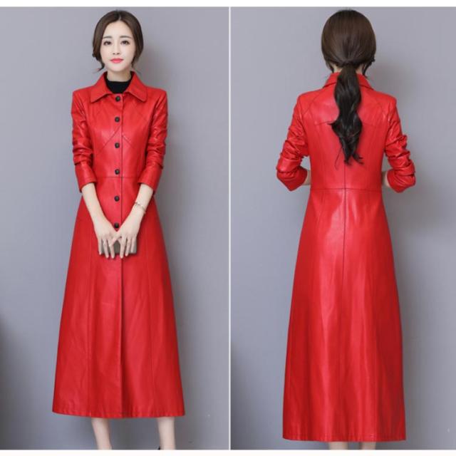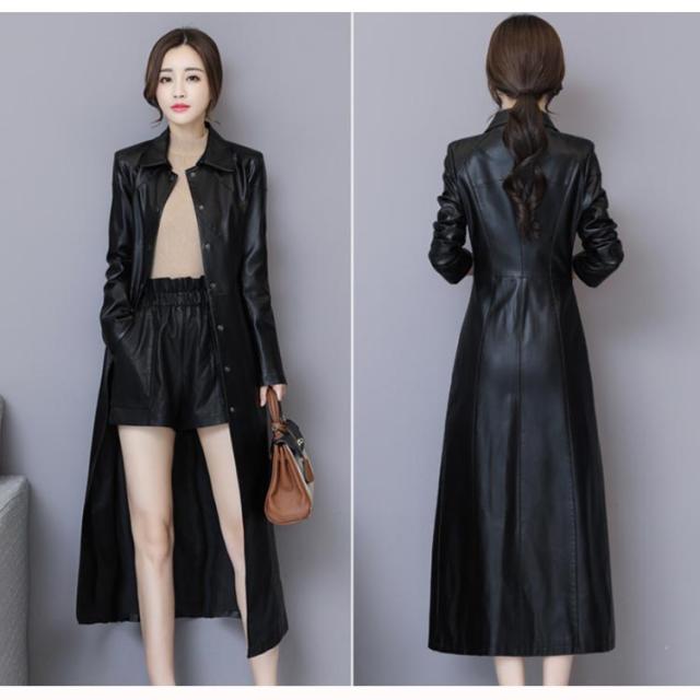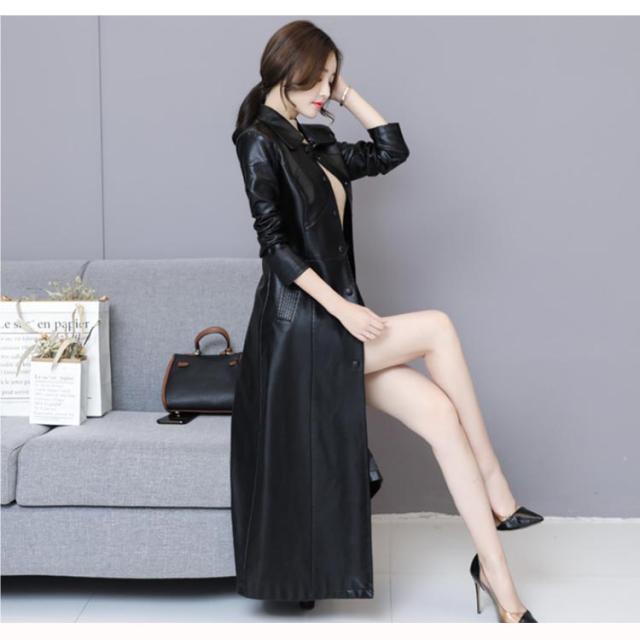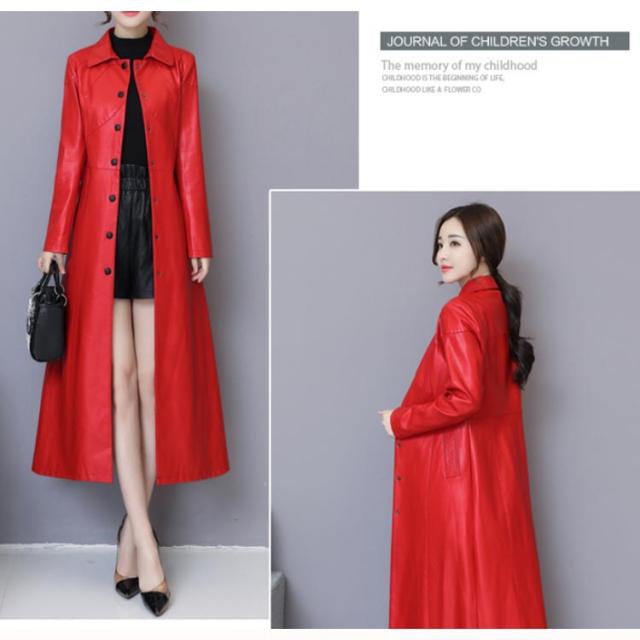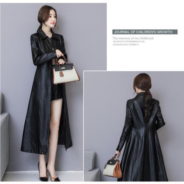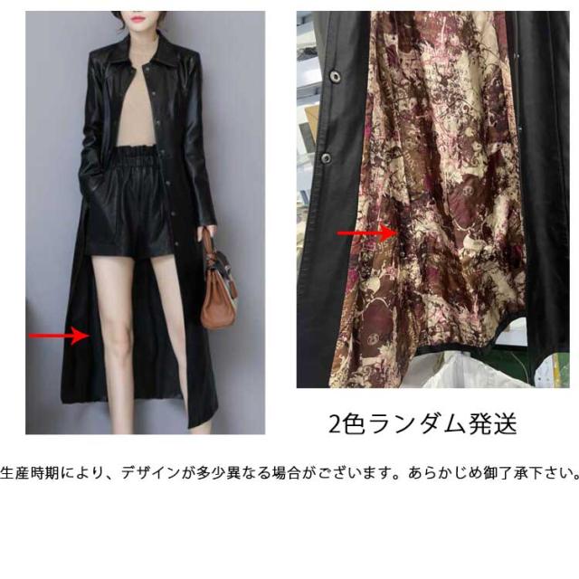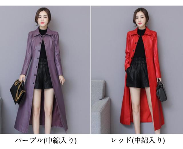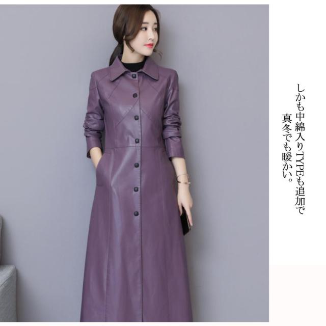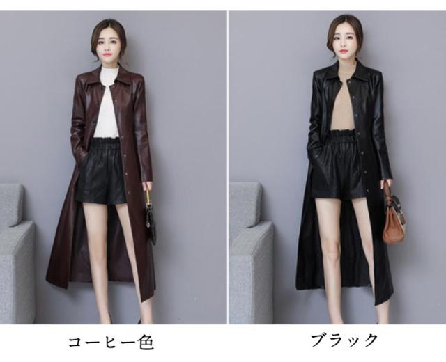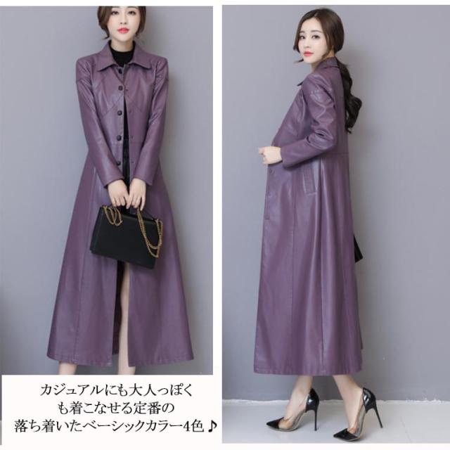 ワンサイズ上にオススメ!トレンチコート レディース ロング丈 レザー フェイクレザー ロングコート トレンチ