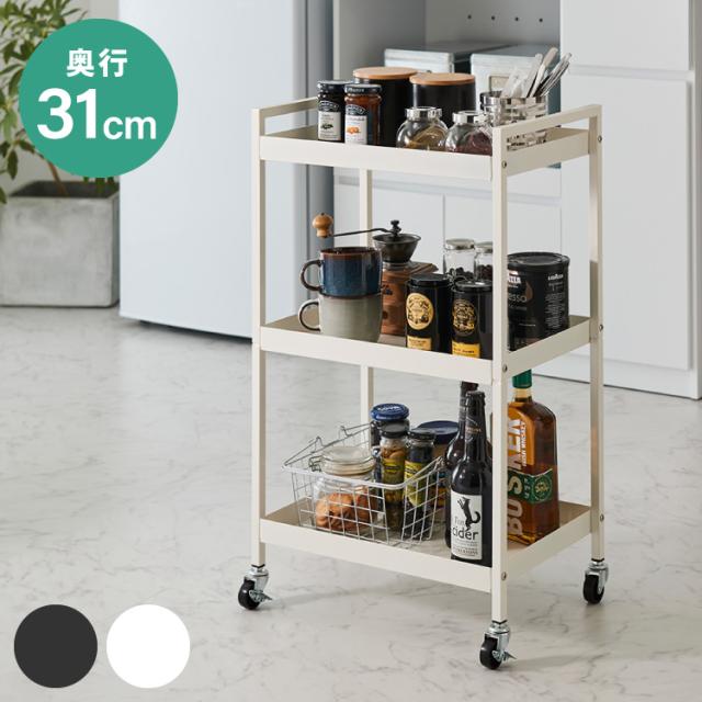 キャスター付き キッチンワゴン 31cm 3段 スチールワゴン ワゴン ラック キッチンラック すき間収納 キャスター スチール すきま 隙間 コンパクト 収納ワゴン 省スペース 作業台【送料無料】