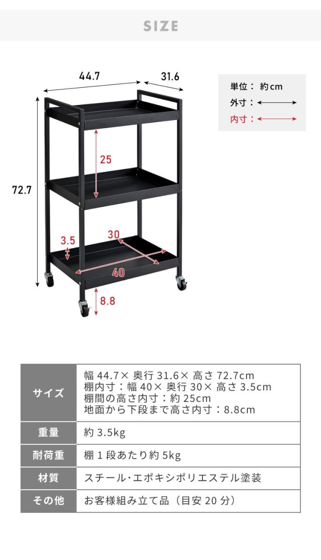 キッチンワゴン 幅45cm 奥行16cm | キッチンワゴン 幅45cm 奥行31cm | キッチンワゴン 折りたたみ幅48cm 奥行30cm |