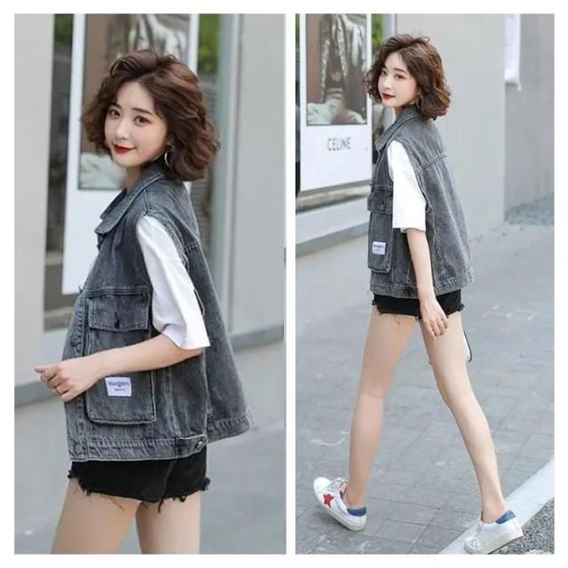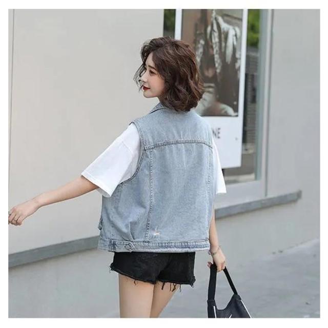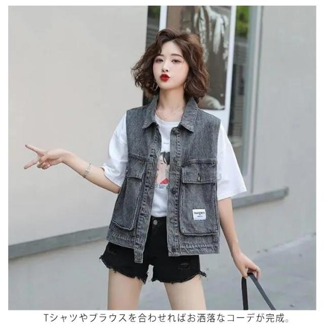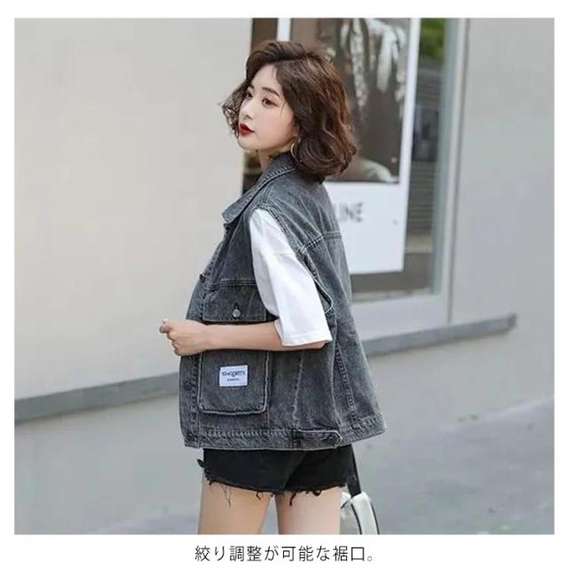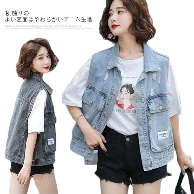 送料無料 デニムベスト デニムジャケット 前開き トップス ノースリーブ タンクトップ ゆったり 重ね着 レイヤード アウター カジュアル スウェット アメカジ ストレッチ 羽織り 可愛い お出かけ オフィス 春 夏 秋 春服 夏服 母の日