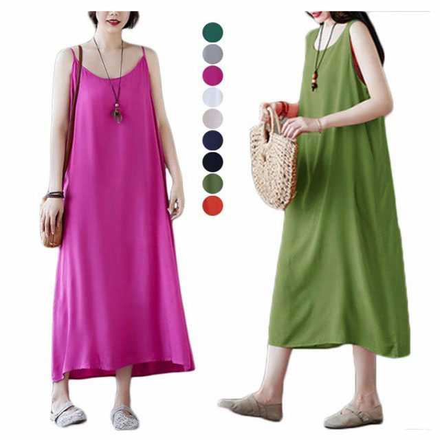 ワンピース ロング 夏 レディース 2タイプ ノースリーブ インナーウエア キャミワンピース ロング丈 インナーワンピース aライン シンプル 無地 春夏 新作 送料無料 ゆったり 大きサイズ