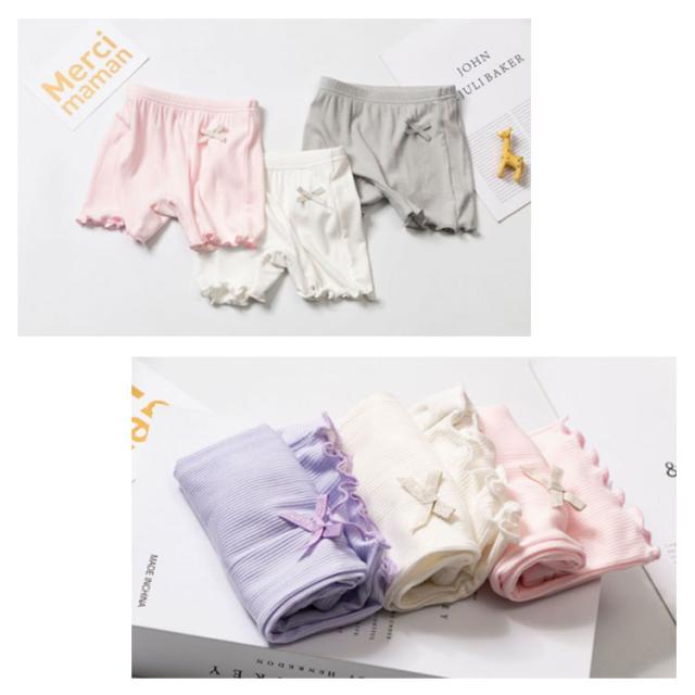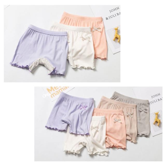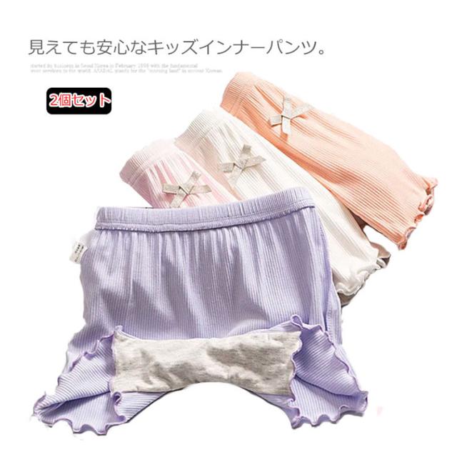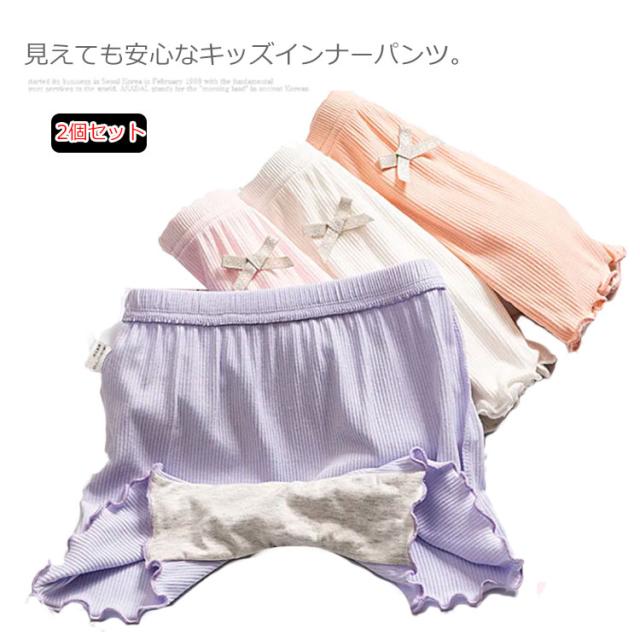 インナーパンツ 女の子 3分丈 2枚セット ペチパンツ リブ ショートパンツ レギンス 薄手 ショーツ 短パン 見せパン キッズ 子供服 子ども服 裾フリル ボトムス 下着 肌着 カジュアル おしゃれ 春服 夏服 送料無料