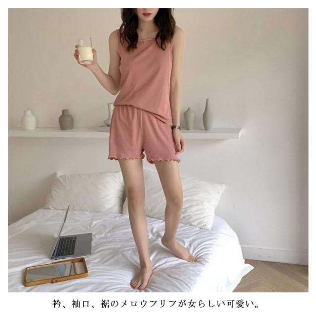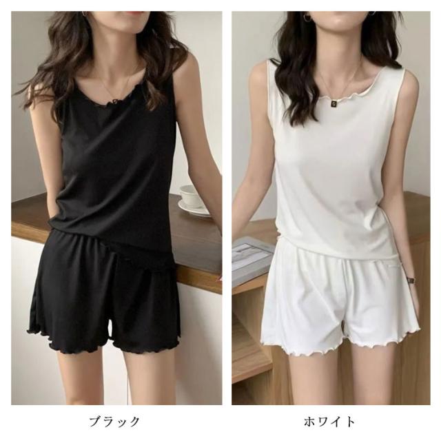 M-5XL ルームウェア 上下 セットアップ 夏用 タンクトップ ショートパンツ 冷感 送料無料 レディース 部屋着 パジャマ ひんやり 寝間着 フリル 可愛い 韓国ファッション