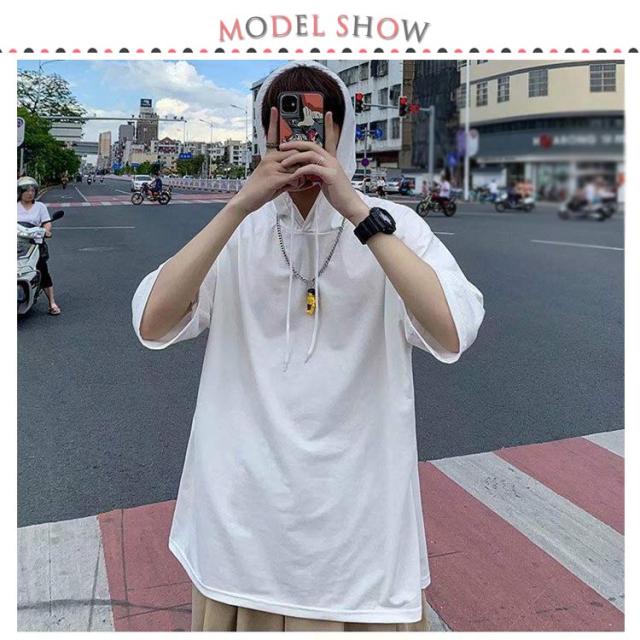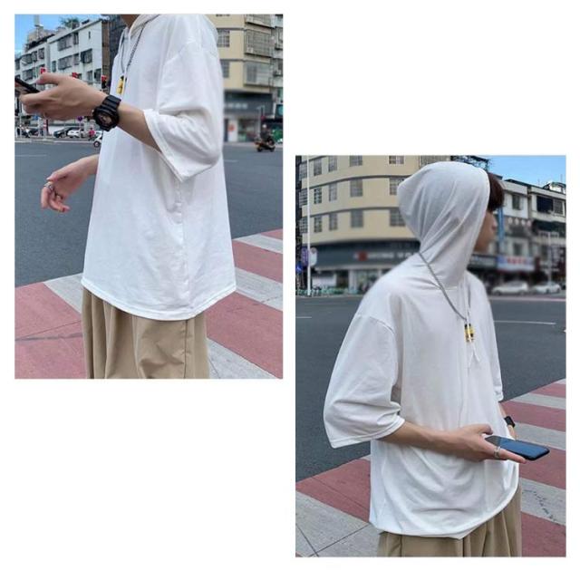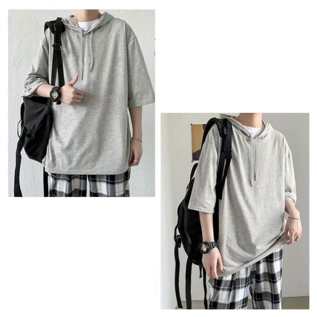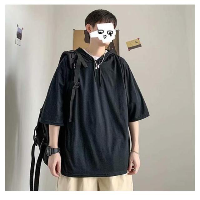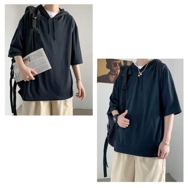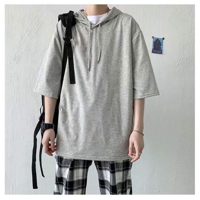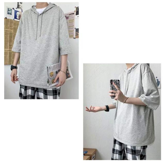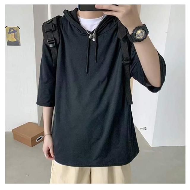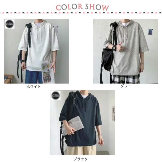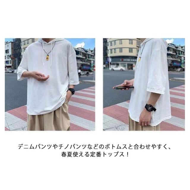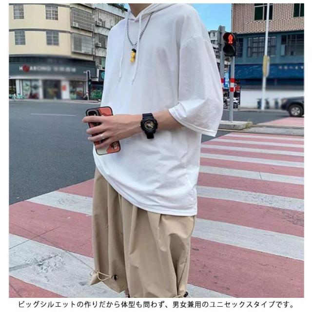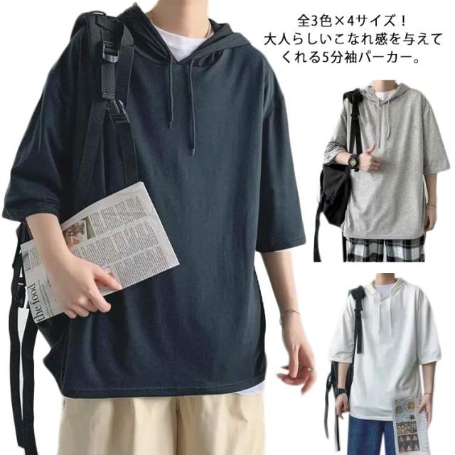 パーカー 五分袖 メンズ レディース 半袖パーカー フード付き tシャツ パーカー ビッグシルエット ユニセックス tシャツ トップス パーカー 無地 お洒落 カジュアル