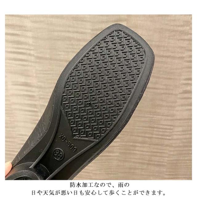 | 雨の日もお洒落に決まるスタイリッシュなレインシューズが登場です。 防水加工なので、雨の日や天気が悪い日も安心して歩くことができます。 長時間の使用でも足が痛くなりにくい3.5cmのローヒール仕様。 滑り止め加工が施されたソールで雨の日も気軽に履ける。 雨の日の通勤や通学、ショッピングなどさまざまなシーンで活躍してくれそう。 | |