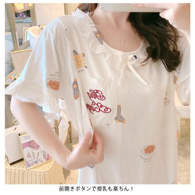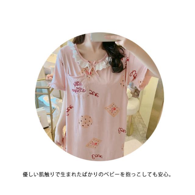 授乳 パジャマ 半袖 授乳服 マタニティ パジャマ 半袖 ルームウェア ワンピース 授乳対応 授乳 トップス 授乳 ワンピース 綿100% ロング丈 妊婦 授乳服 ママ 妊娠 部屋着 寝間着 出産 入院 準備