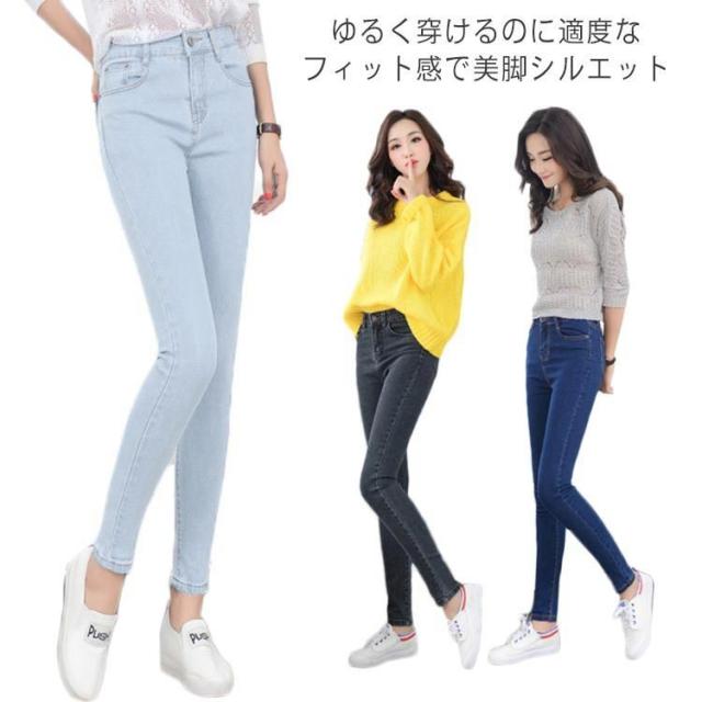 デニム パンツ デニムパンツ 極伸び 超ストレッチ スキニー 送料無料 春 夏 秋 冬 美脚 厚手 細見え オフィス 可愛い 小さいサイズ 大きいサイズ ライトブルー ネイビー ブラック グレー
