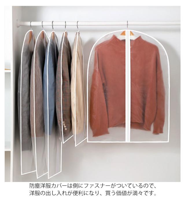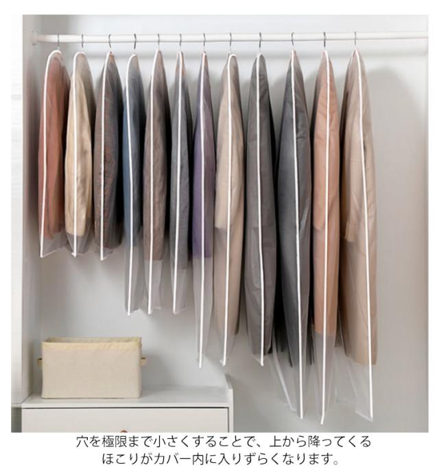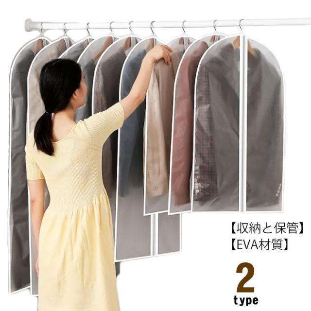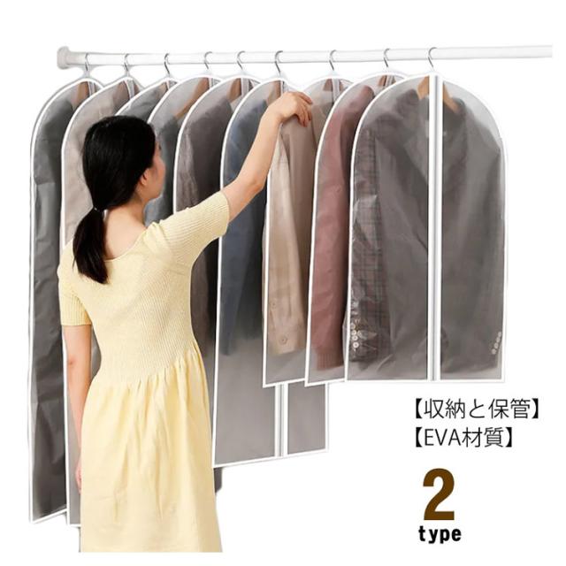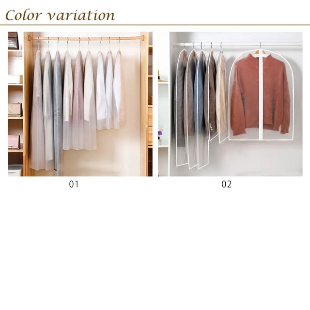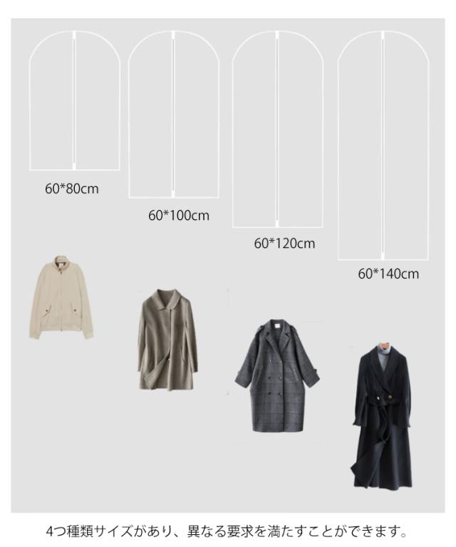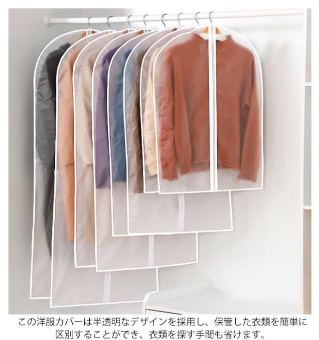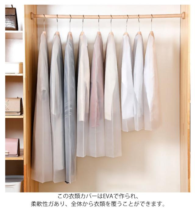 洋服カバー ダストカバー 衣類カバー 半透明タイプ 防塵カバー 衣類収納袋 ドレス スーツカバー コート収納 前開き 防塵 防水 防カビ 防皺 防湿 防虫