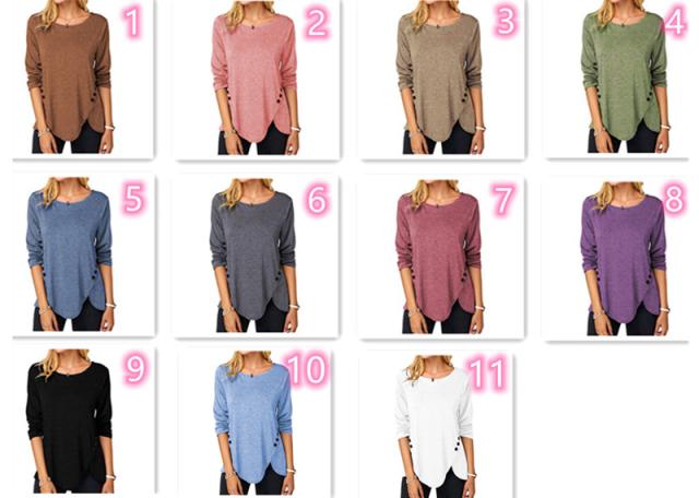 全11色×5サイズ!レイヤードtシャツ tシャツ レディース 長袖 ラウンドネックtシャツ サイドボタン フロントスリット カットソー 無地 大きサイズ 春 秋 シンプル おしゃれ