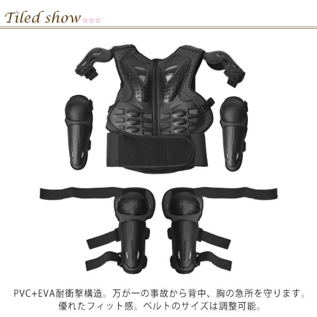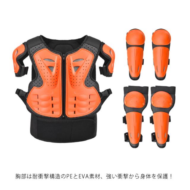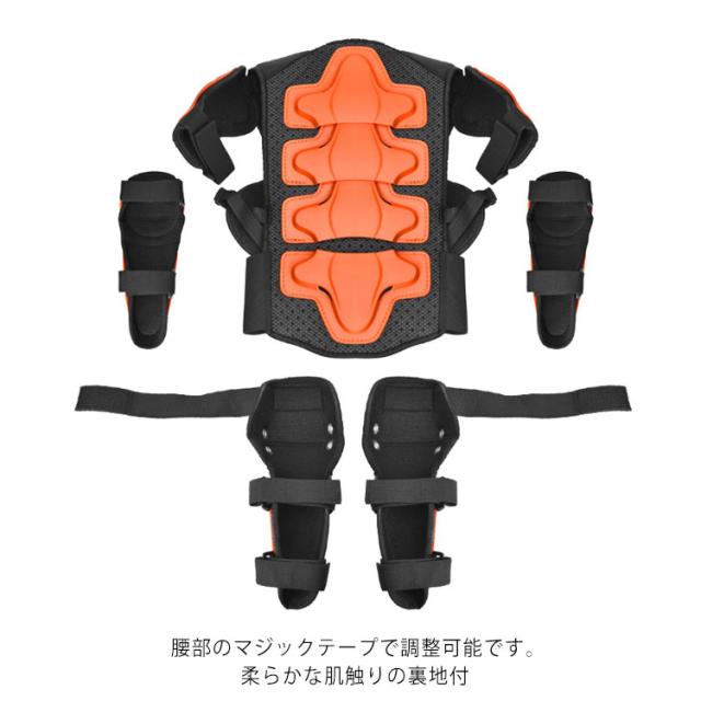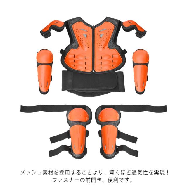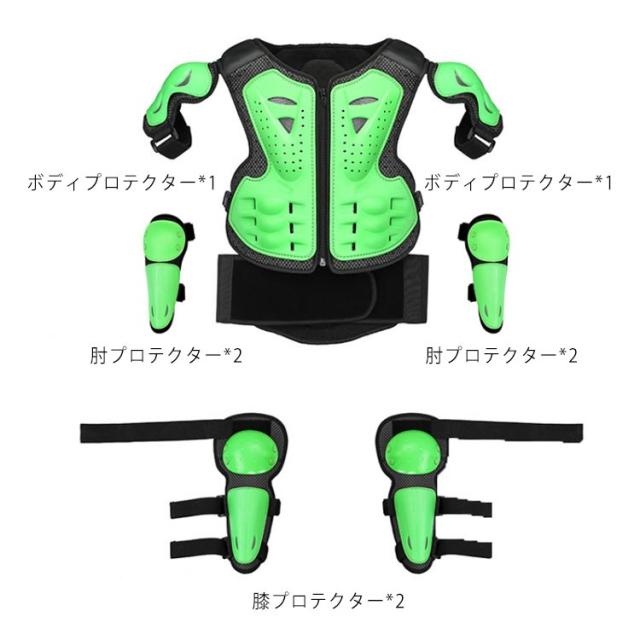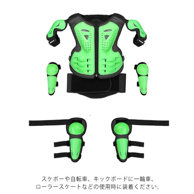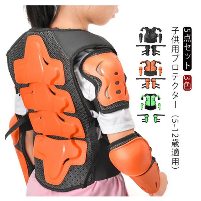 キッズ プロテクター 胸部 肩 腹部 腰 膝 腕 守る 5点セット ボディプロテクター*1 肘プロテクター*2 膝プロテクター*2 子供用 セット 自転車 スケートボード バイク サイクルウエア 耐衝撃 スノボ 通気 安全 スポーツ用 軽量