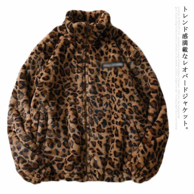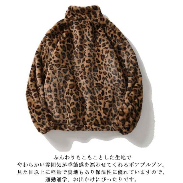 ボアジャケット メンズ レディース ヒョウ柄 ジャケット ふわふわ 暖かい ムートンコート 裏ボア 裏起毛 アウター スタンドカラー 厚手 ライトアウター ジップアップ パーカー 羽織 オーバーサイズ 秋冬 おしゃれ 防寒 防風 韓国ファッション カジュアル 原宿系 ストリート
