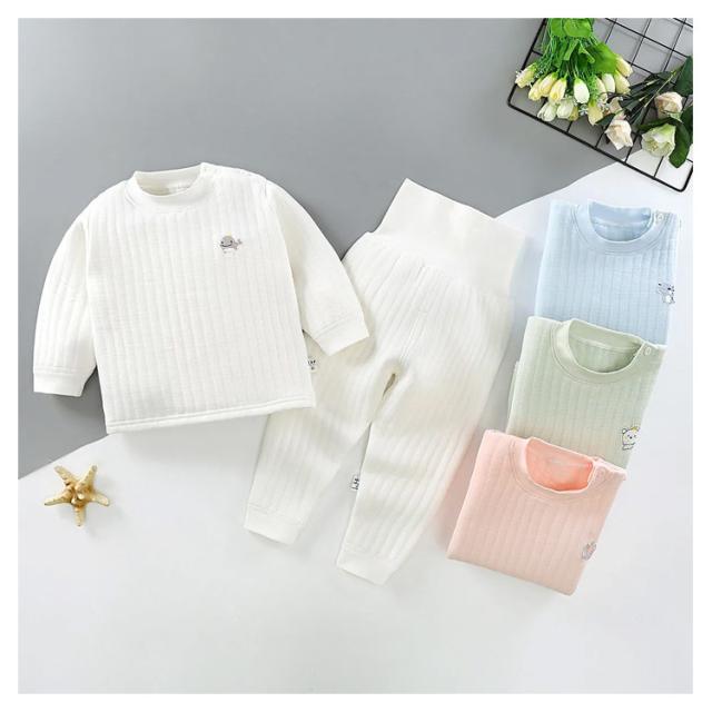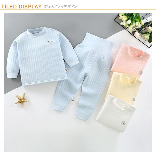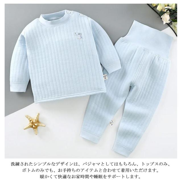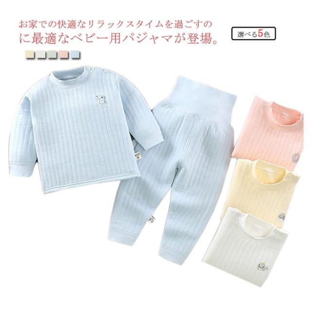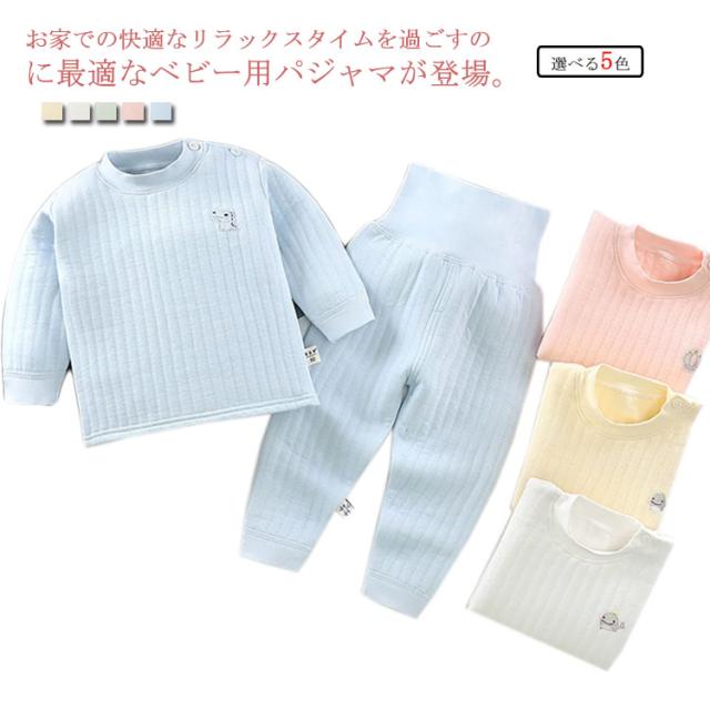 【送料無料】ベビー服 パジャマ 長袖 上下セット 綿100% 赤ちゃん キルト 厚手 腹巻付き 男の子 女の子 ルームウエア 春秋冬 部屋着 寝巻き 長ズボン 防寒 暖かい 無地 シンプル 60/70/80/90/100/110 cm