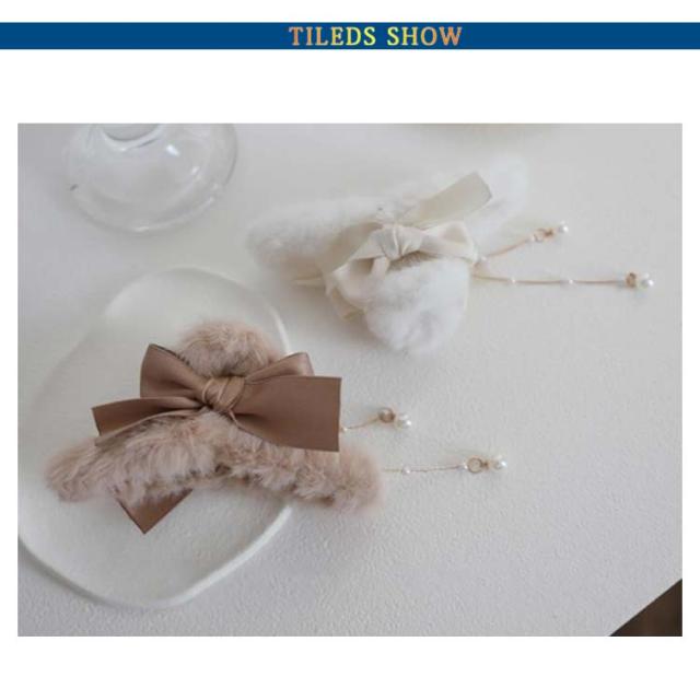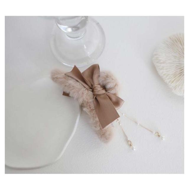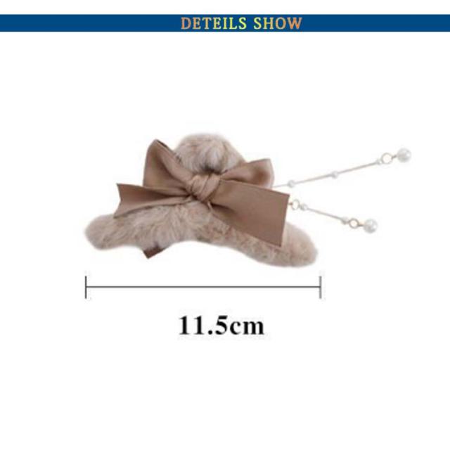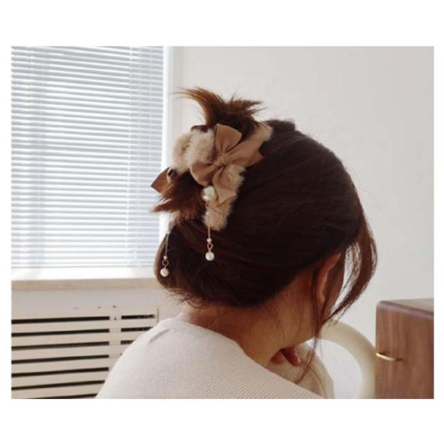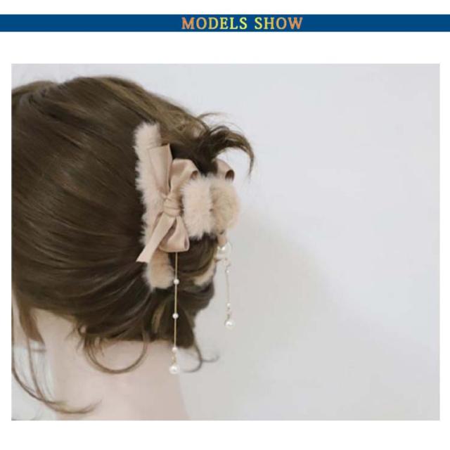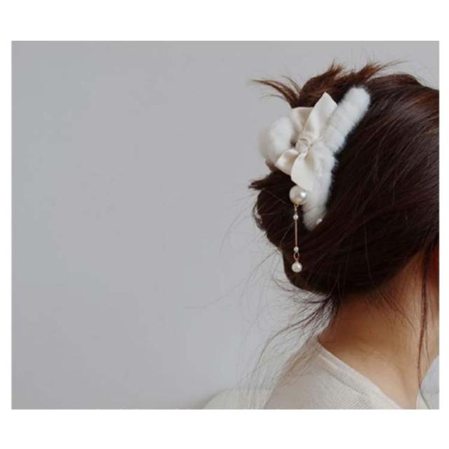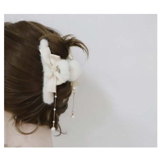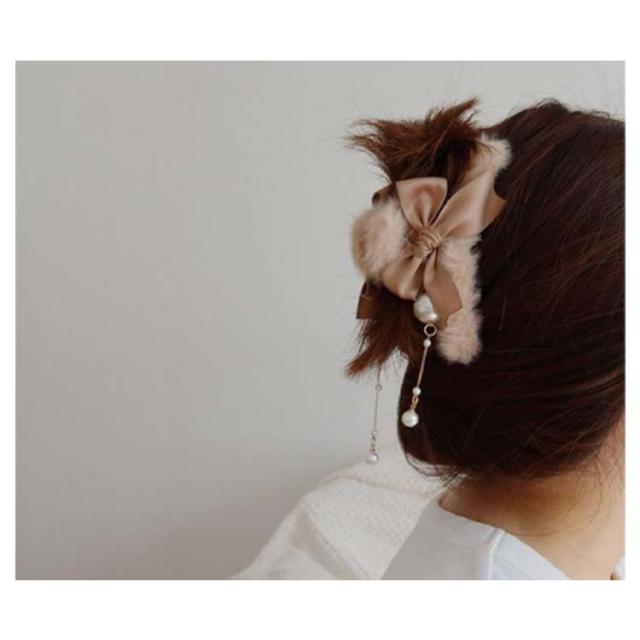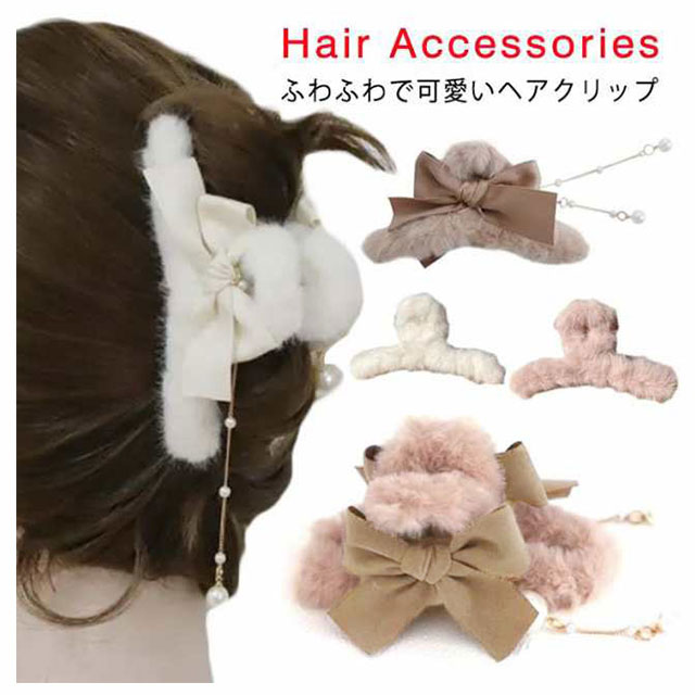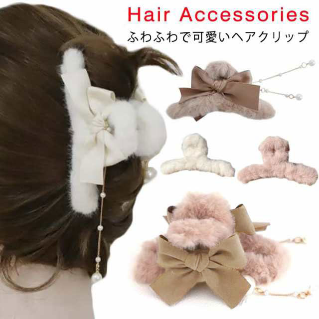 ふわふわ ファー ヘアクリップ モコモコ ヘアクリップ 大きめ バンスクリップ フェイクファー ヘアクリップ リボン ヘアクリップ レディース 髪留め 髪飾り まとめ髪 パーティー デイリー 秋冬 ヘアアクセサリー ヘアアクセ 大人可愛い