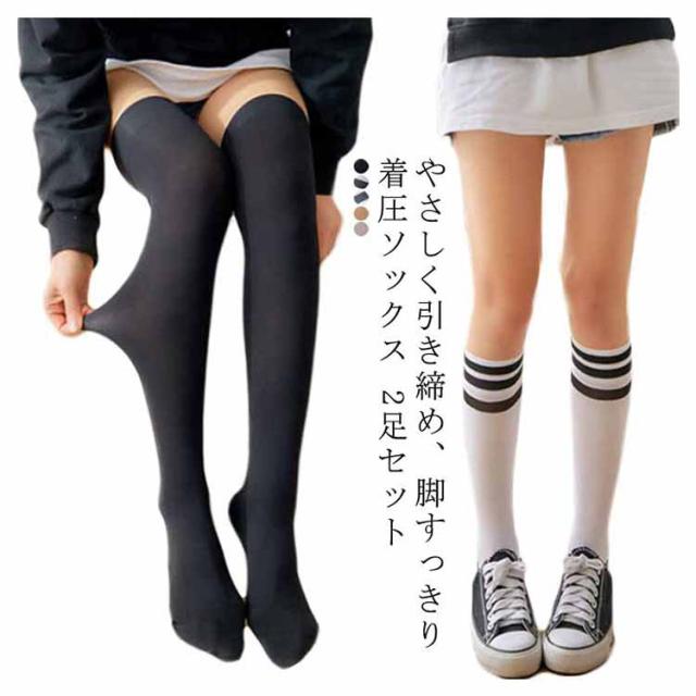 【送料無料】お得!2足セット ハイソックス 靴下 レディース 婦人 着圧ソックス ニーハイソックス ストッキング 黒 絶対領域 美脚 締め付け 伸縮 着圧 フィット感 ロング ソックス 細脚 美脚