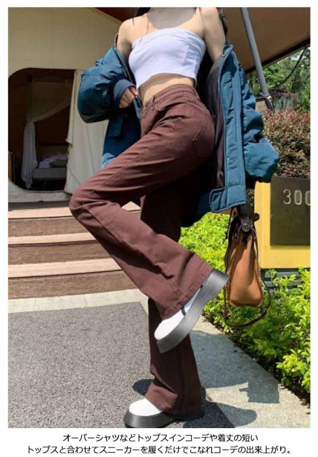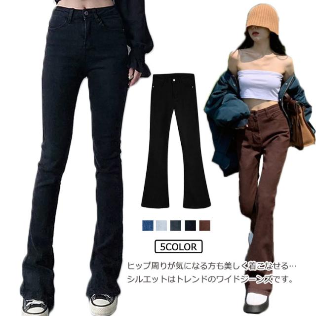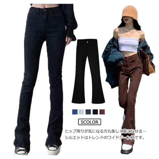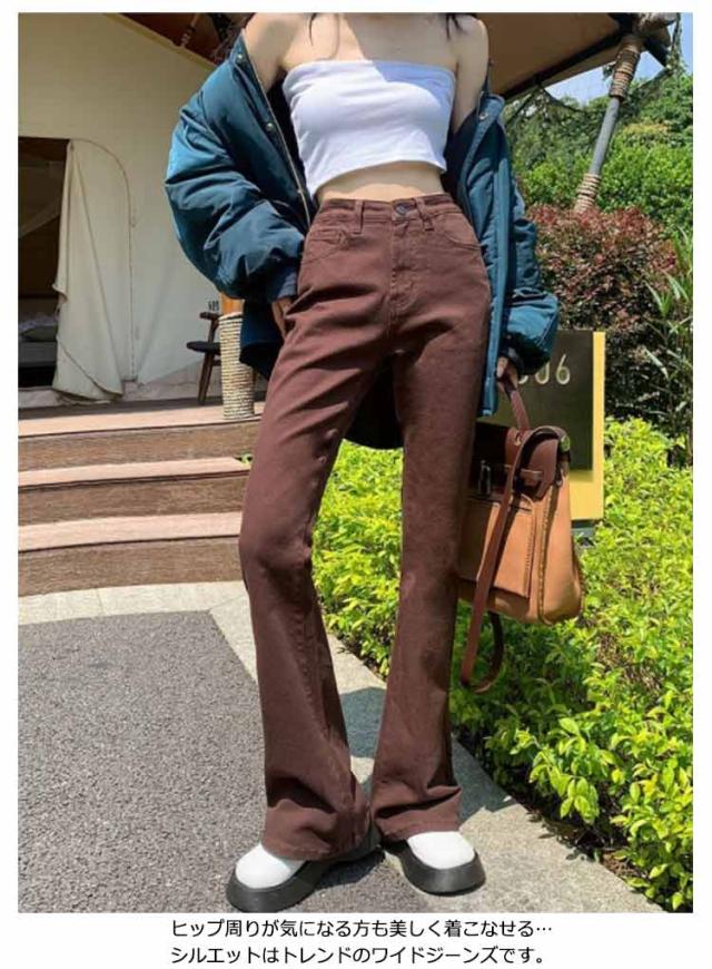 デニムパンツ レディース ワイドパンツ デニム カーゴパンツ ジーンズ ロングパンツ ブーツカットパンツ ズボン ボトムス ハイウェスト ポケット付き ゆったり レトロ 20代 30代 40代