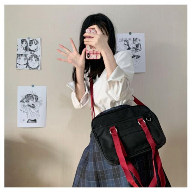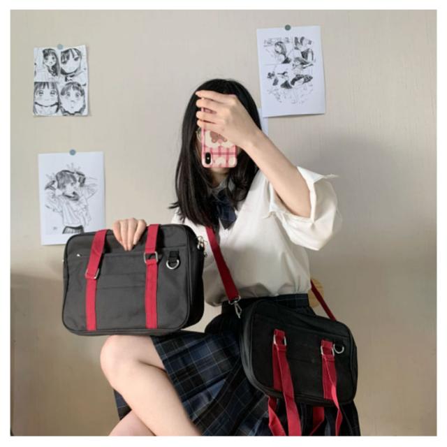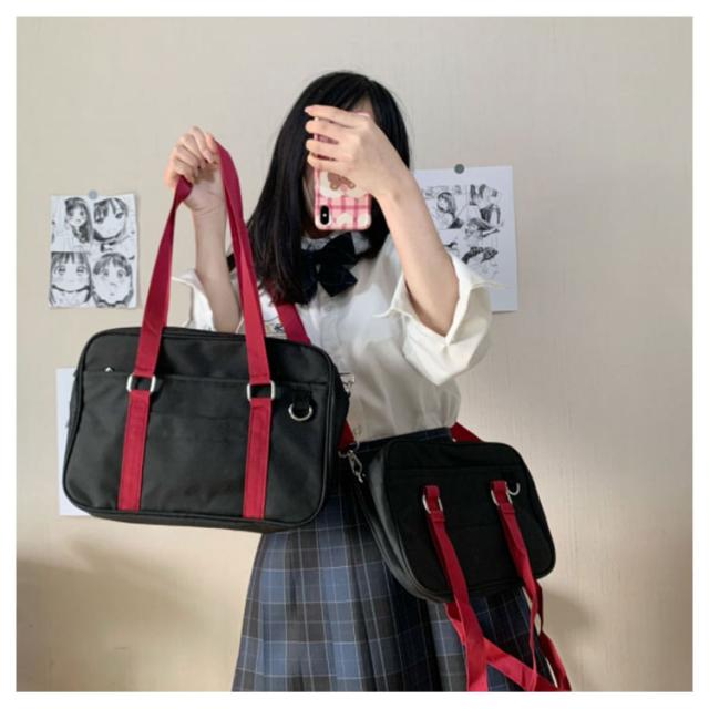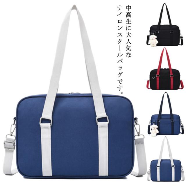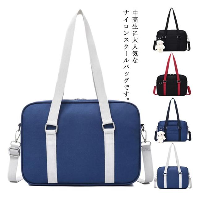 スクールバッグ サブバッグ 中学生 高校生 ナイロン バッグ 大容量 通学 女子高生 男女兼用 女子 男子 ボストンバッグ 大容量 かわいい JKコスプレ 黒 学生鞄 A4対応