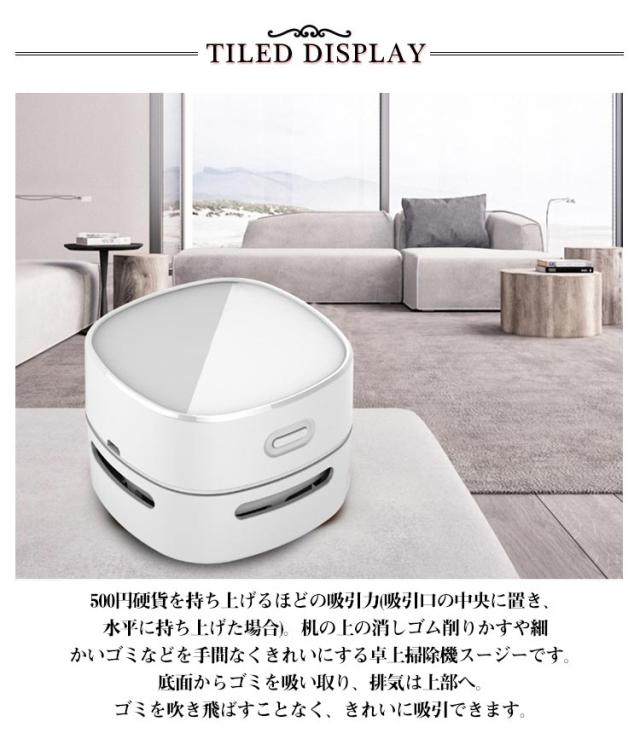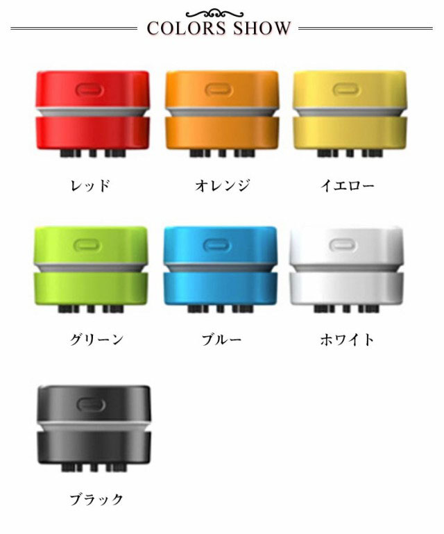 | ▲「卓上パワフルクリーナー」500円硬貨を持ち上げるほどの吸引力(吸引口の中央に置き、水平に持ち上げた場合)。机の上の消しゴム削りかすや細かいゴミなどを手間なくきれいにする卓上掃除機スージーです。底面からゴミを吸い取り、排気は上部へ。ゴミを吹き飛ばすことなく、きれいに吸引できます。 ▲「高い実用性」コンパクトでパワフル吸引力があって、勉強と仕事時消しゴムのカス、削り物のカス、お菓子などの食べこぼし、机上のゴミやほこりやペットの毛など、事務用品としてはもちろん、玄関マット、キーボード、事務所のテーブル、家具の表面、車のクッション、座布団など掃除用具としても役立てられます。 ▲「コンパクトでお洒落!」コードレスで手のひらサイズでどこに置いても邪魔にならず、小さな子供でも遊び感覚でスイスイ掃除ができます。取り扱いしやすいのだけでなく、コンパクトに収納でき、かばんに入れて、オフィスや教室などに携帯便利です。 必要な時にすぐ取り出して使えます。アウトドアにも持ちやすいです。ブラックでシンプルな外観で非常に可愛くて広く愛用されます。 ▲「操作簡単」電池をセットしてスイッチをONにするだけで起動します。PUSHを押して底蓋を外してゴミを捨てます。とても便利です。 | |