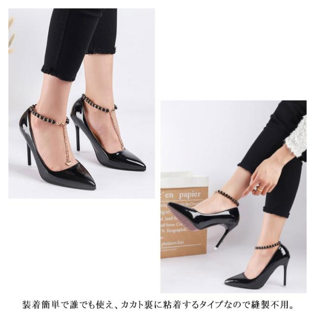 シューズストラップ アンクレット シューズバンド アクセサリー パンプスストラップ 美足 アンクルストラップ 1ペア シューズチェーン 脱げ防止 パンプスベルト おしゃれ パール チェーン シューズベルト パカパカ防止 送料無料