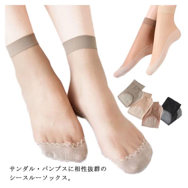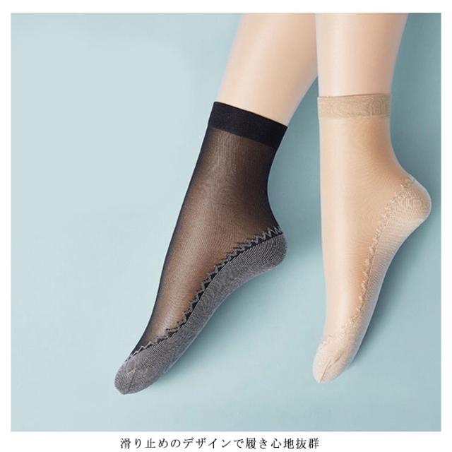 シースルーソックス くつ下 10足組 レディース 送料無料 薄手 夏ソックス 靴下 女性 婦人 透け感 滑り止め 女子力 素足感覚 シースルー 脱げない ストッキング 冷感 伸縮性 やわらかい 母の日 ギフト